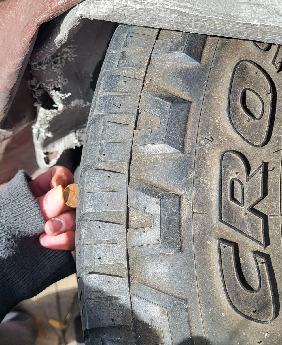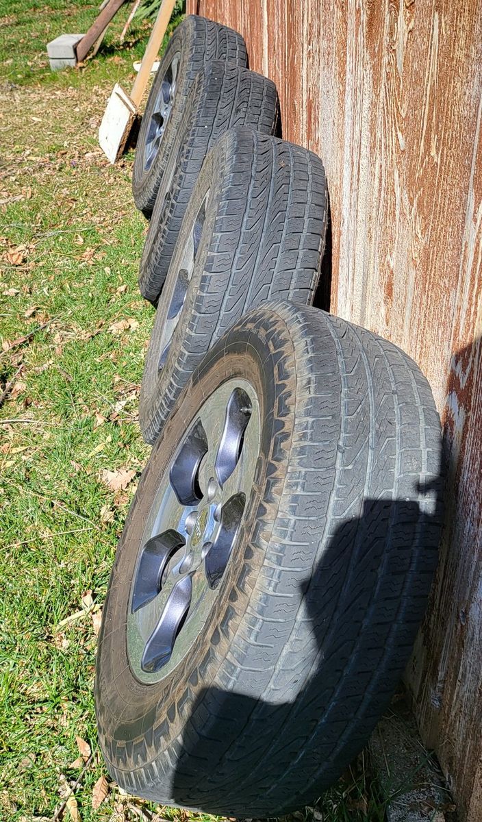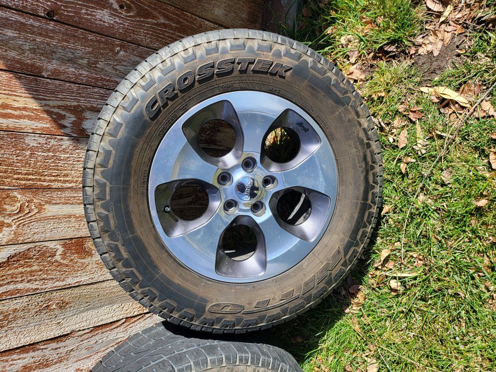 CashAppSet of 4 factory aluminum wheels and tires from a Jeep Wrangler JK. • Tire size: 255/70R18 • Tires: Crosstek All-Terrain • Bolt pattern: 5x5 (5x127) • Factory Jeep wheels with center caps Tread measures about 4/32 (penny test shown in photos around Lincoln’s ear). Still usable for daily driving or as a budget replacement set. Wheels are straight and in good condition.