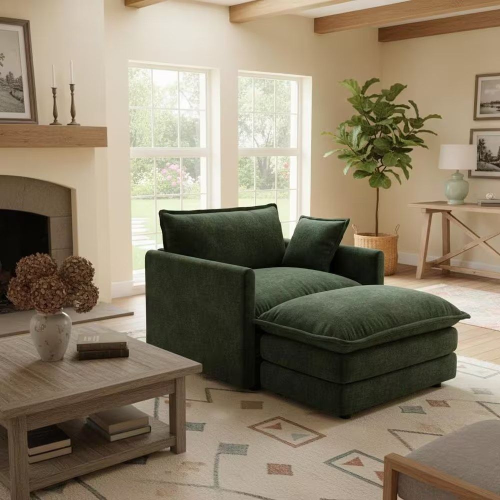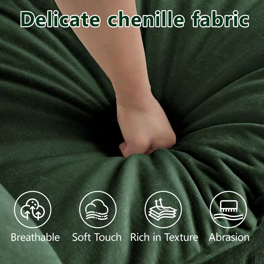 Sink into effortless comfort with the HEAT Series Sectional Sofa with 1 Ottoman, a perfect fusion of modern design and laid-back luxury. Upholstered in soft, high-end chenille fabric, this sectional offers a beautifully textured feel that's cozy yet refined. Each seat features a 25.2-inch deep seat and 19-inch seat height for full-body support and inviting comfort.The included ottoman instantly extends your lounging experience-use it to rest your legs, as a flexible extra seat, or as a small coffee table for casual gatherings. With its solid wood frame and high-resilience sponge cushions, the HEAT sectional is built to stay comfortable and supportive for years.The clean 3.2-inch track arms and compact form bring a modern aesthetic to any space, while its modular flexibility lets you reconfigure or expand your layout effortlessly. Combine it with armless or corner modules to create your ideal sectional-from a cozy two-seater to a spacious L- or U-shaped design. Available in six colors-Ivory White, Sand Beige, Baltic Blue, Hunter Green, Shadow Black, and Graphite Gray-this sectional blends timeless elegance with contemporary versatility, perfectly suited for apartments, studios, and modern homes.. Solid wood frame and short legs for durability. Deep lounge-worthy seating with a 25.2-inch seat depth each. Modular flexibility allows customizable layouts. Arm Style: Rolled Arm. Assembly Required: Assembly Required. Back Style: Attached Pillow. Color Family: Green. Color/Finish: Hunter Green. Cushion Material: Cotton. Features: Armrests,Chaise,Reclining,With Ottoman. Frame Material: Wood. Interior Furniture Type: Sectional. Number of Pieces: 3. Orientation: Symmetrical. Seats: 3 Seat. Shape: Modular. Upholstery Material: Chenille. Weight Capacity (lb.): 550 lb. Product Depth (in.): 57.4 in. Product Height (in.): 33 in. Product Width (in.): 41.4 in