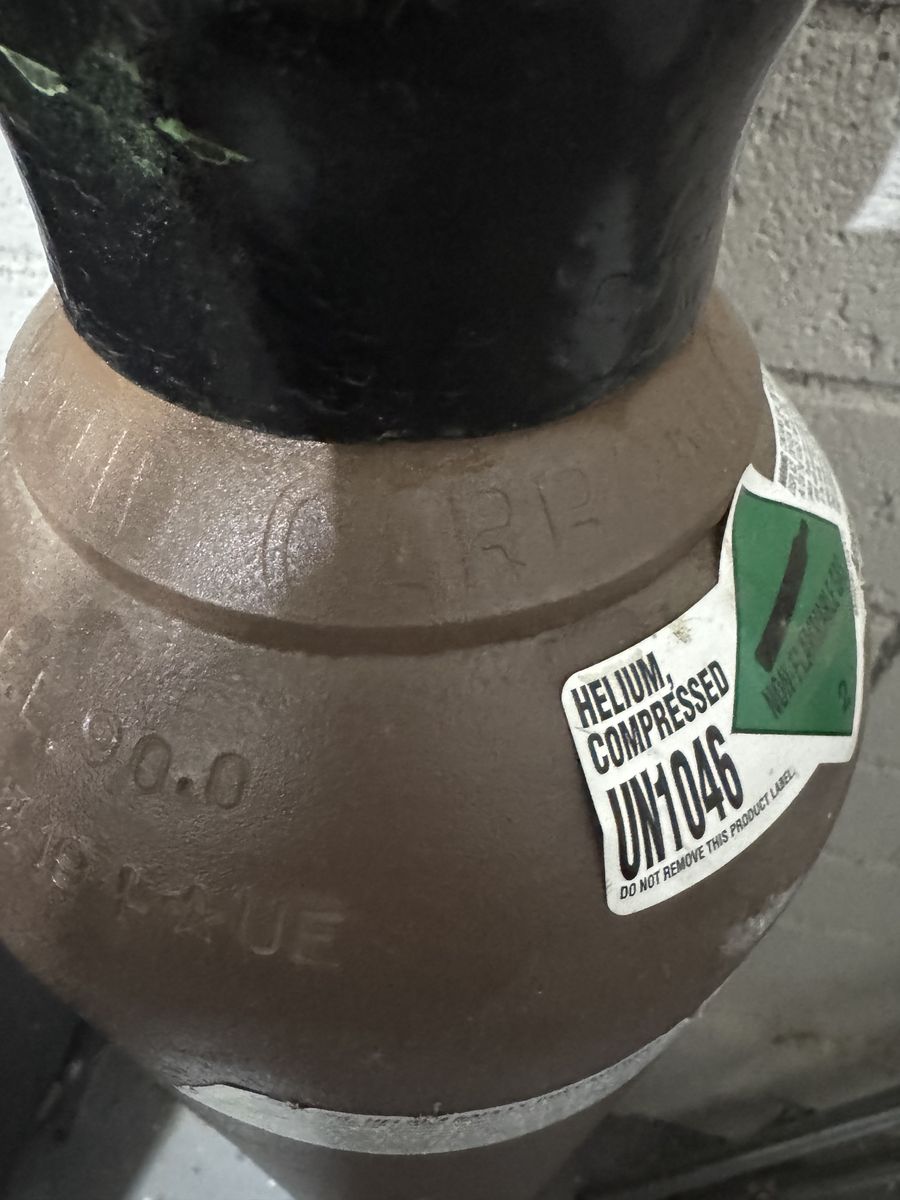 VenmoHelium 125 cuft tank. Full tank with ballon filler. Should fill around 200 11” latex balloons. Tank is refillable at local gas supplier.