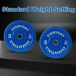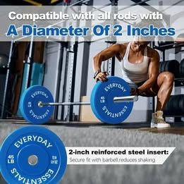 BalanceFrom 45 lbs Pair Olympic Bumper Plates with Steel Hub, Color Coded Crafted from high-density rubber for durability and long-lasting performance Designed to fit Olympic barbells with a 2" inner ring diameter Total diameter of 17.75" ensures stability during lifts Ideal for powerlifting, Olympic lifting, and cross-training Available in various weight options and sold as pairs or complete sets
