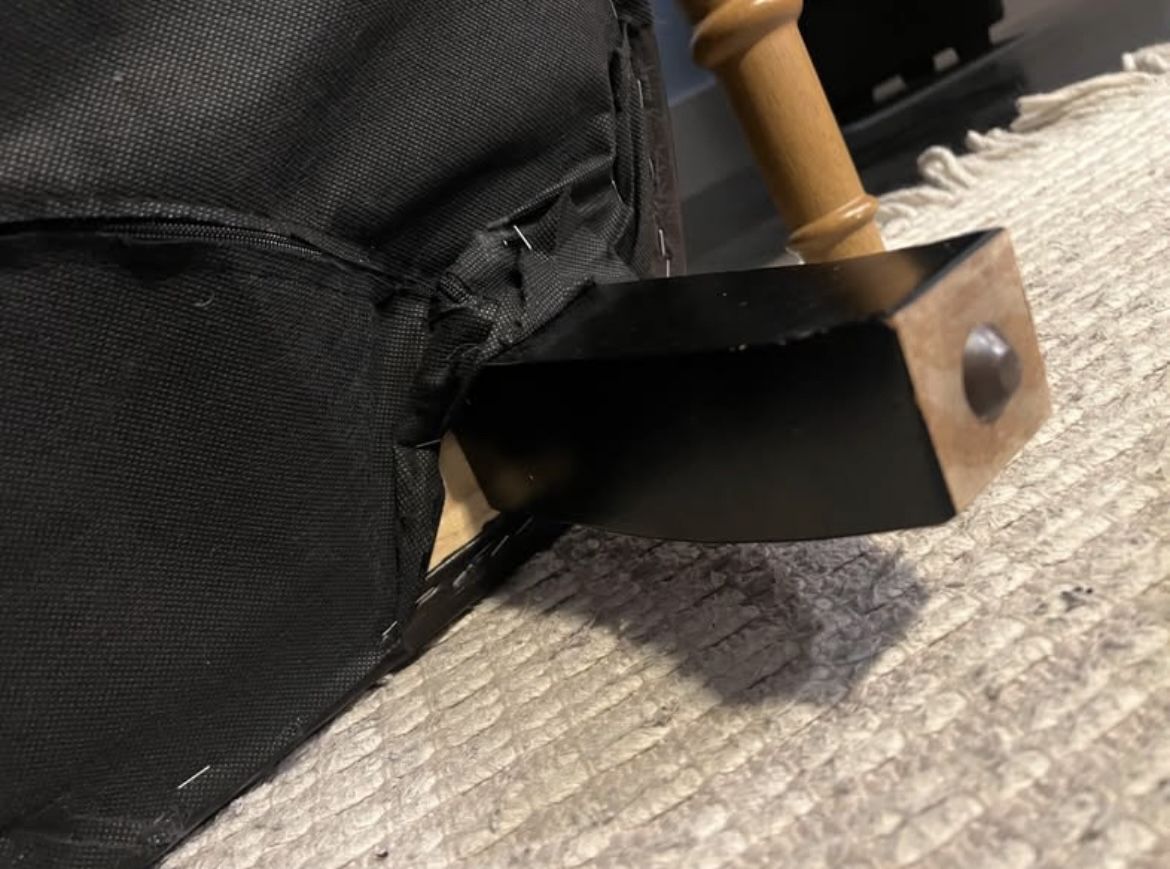 Great overall condition with very minimal scuffing consistent with normal use. One leg was previously repaired and has small, inconspicuous screws added as pictured for extra support, making the chair solid and stable