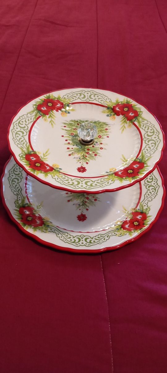 Holiday-themed decorative Christmas tree multi-layer serving plate as shown.