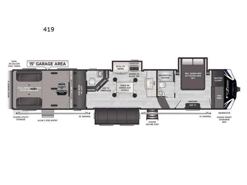 Keystone RV Fuzion toy hauler 419 highlights: