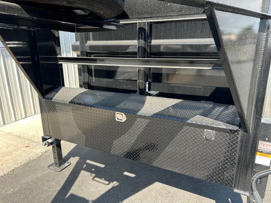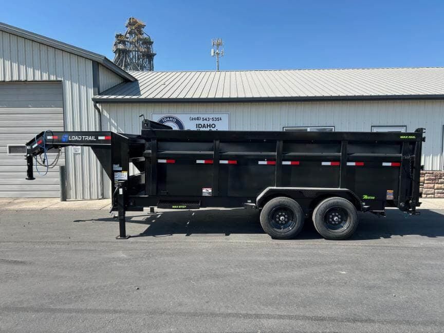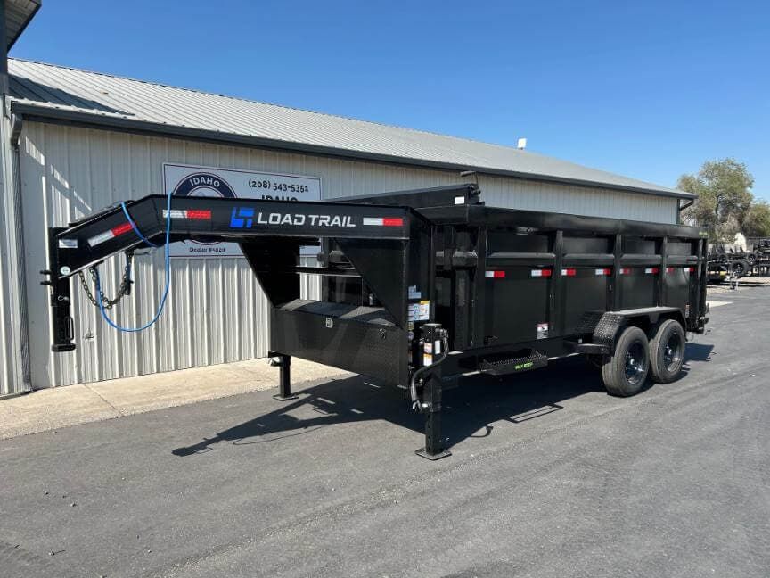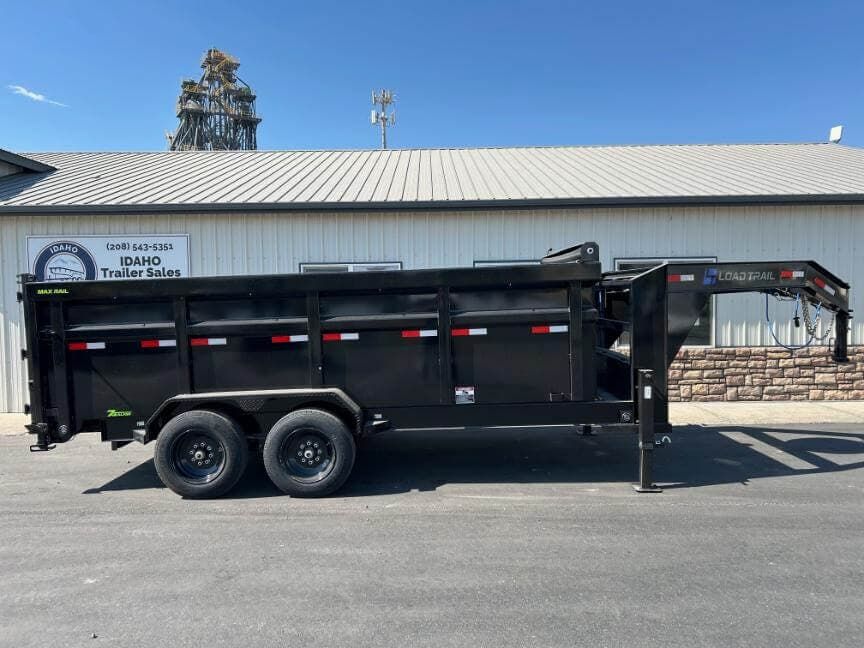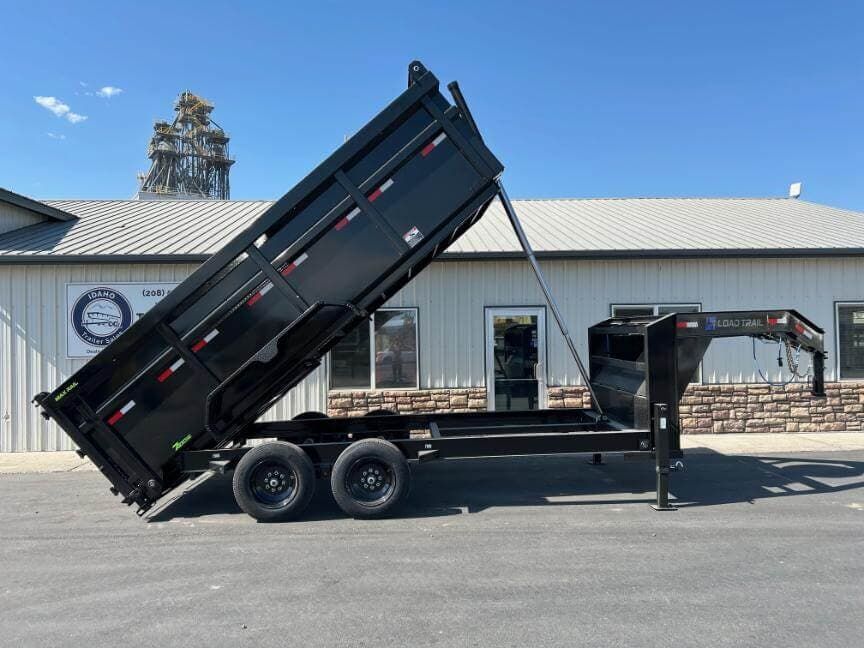 Load Trail 83″ wide x 16′ long 16K Low-Pro gooseneck dump trailer