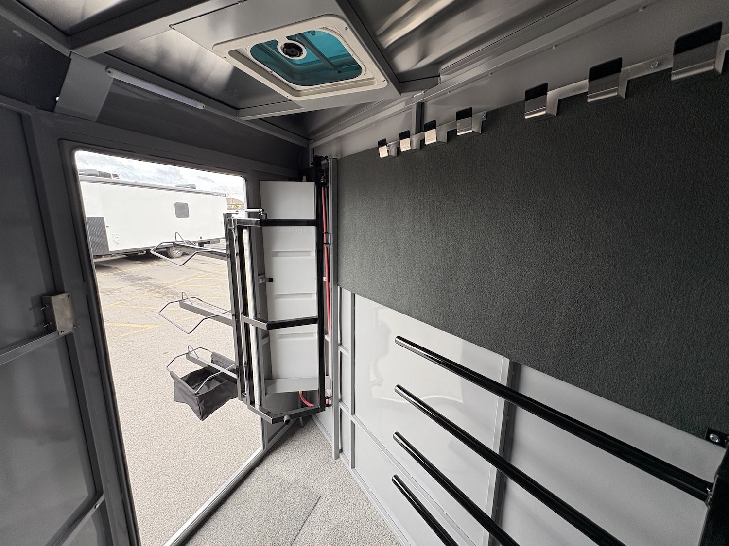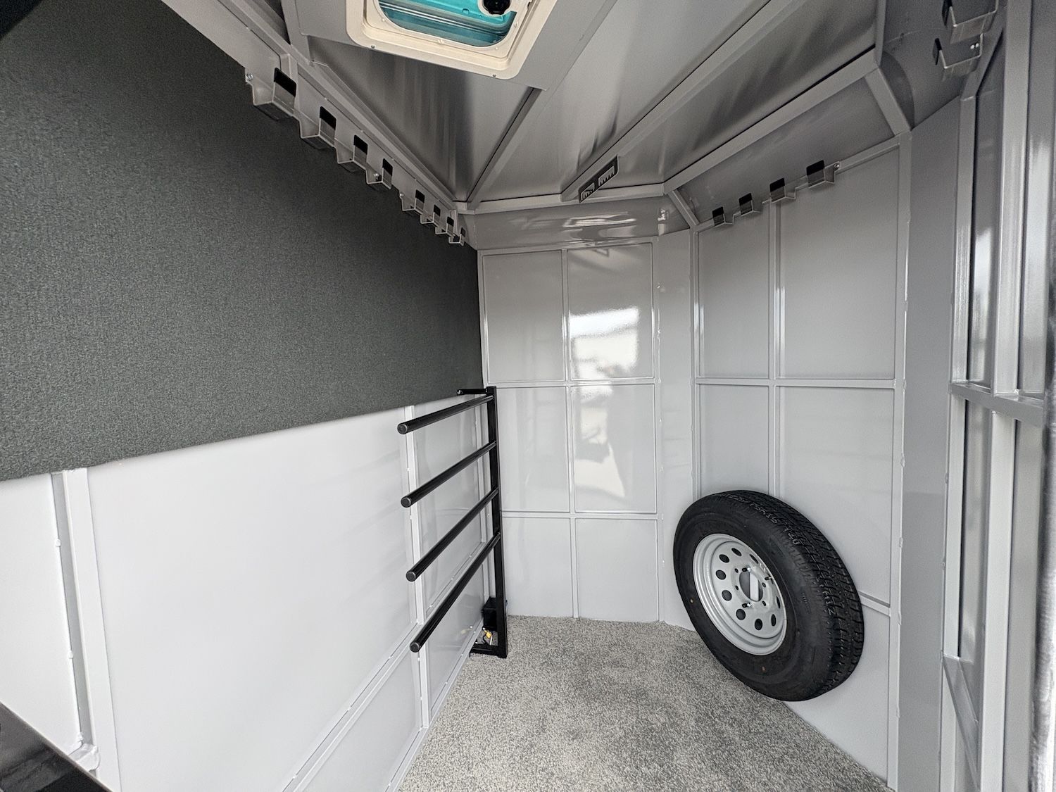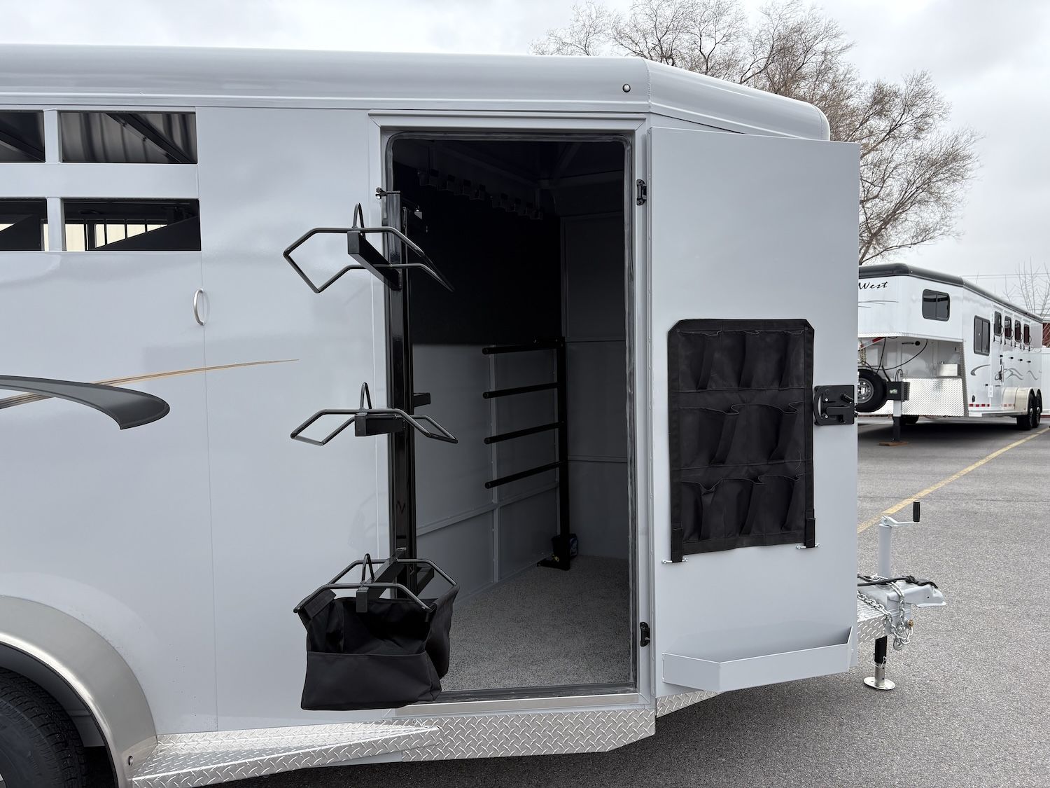 Convenience Package - swing-out saddle rack, spare tire, water tank, door mounted tack organizer, sport bag, load light each side and rear gate