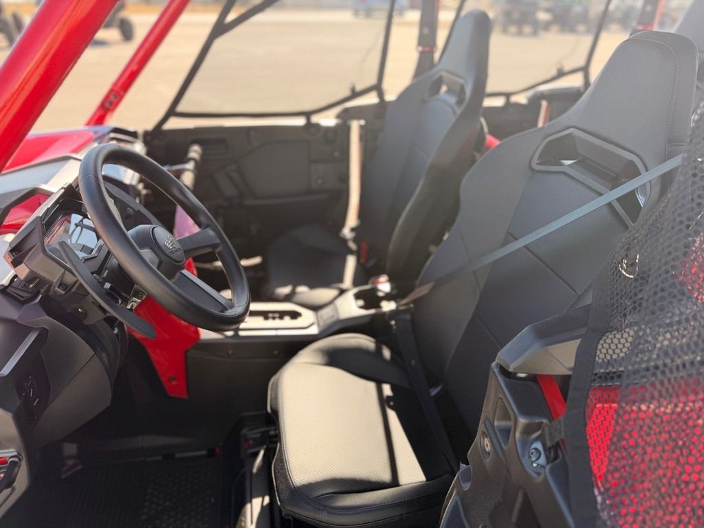 Safety is our top priority. The standard roof and hard doors with side nets help protect from debris and keep occupants inside. Three-point seatbelts and emergency locking retractors provide added safety.
