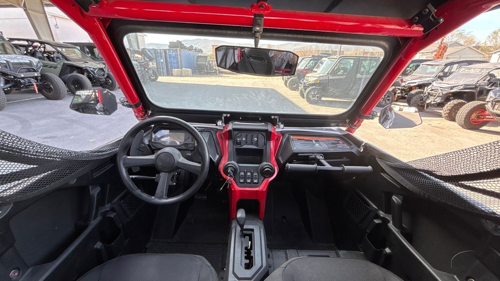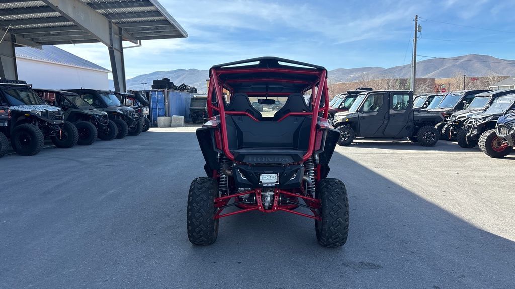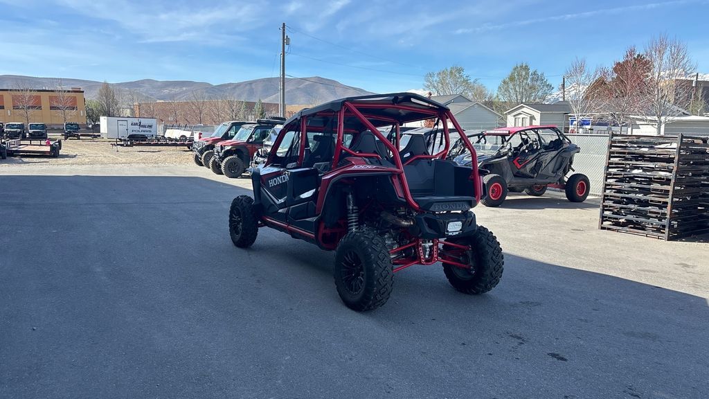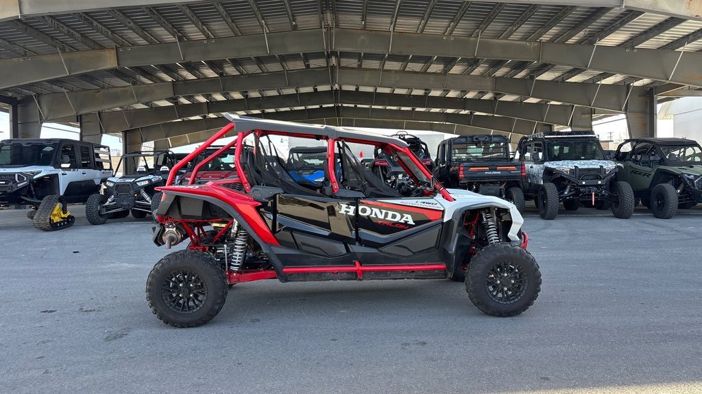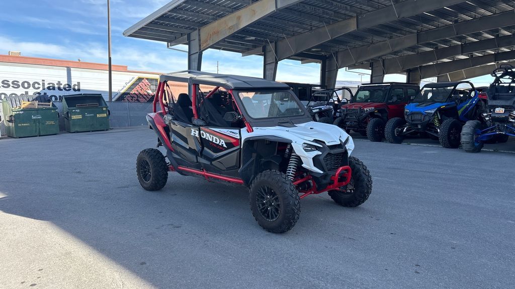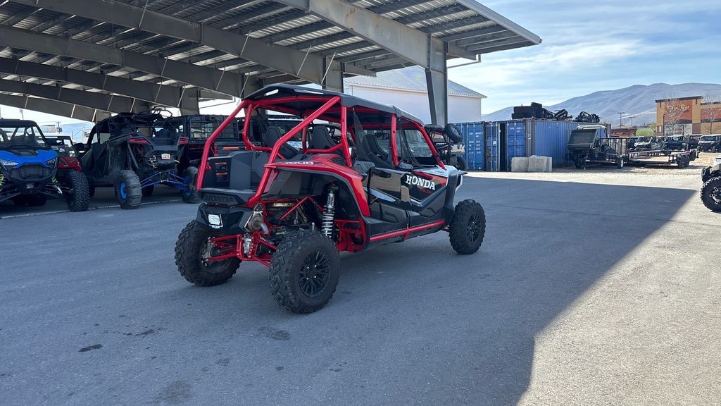2024 Honda® Talon 1000R-4 FOX Live Valve UNLEASH THE BEAST If you want the performance of a Honda Talon 1000R, but also want to share the fun with more passengers, then step this way. That’s why we make our four-seater side-by-side Talon 1000R-4 FOX Live Valve. With the same great 999cc Honda Unicam engine and our automatic Dual-Clutch Transmission (DCT) driveline as our two-seat Talons, you get not only awesome performance but a level of refinement and comfort only Honda can offer. For 2024, we’ve updated the stadium seating, and our Talon 1000R-4 FOX Live Valve adds a premium, automatically adjusting active suspension package. If you like tight, technical trails, make sure you check out our Talon 1000X models too. But no matter which Talon you choose, you’re going to rule the off-road roost! Features may include: ENGINE POWERFUL 999cc TWIN-CYLINDER ENGINE Sport side-by-sides need power, and you’re sure to find the Talon 1000R-4 FOX Live Valve offers plenty of it. The Talon 1000R-4’s 999cc liquid-cooled inline twin delivers the kind of powerful torque and quick-revving horsepower you’d expect from a flagship sport model, but is equally responsive in lower revs and in the critical midrange too. Rubber mounted, set longitudinally in the chassis and managed by our sophisticated PGM-FI engine-mapping system, it delivers the kind of refinement and dependability no other side-by-side can match. UNICAM CYLINDER HEAD DESIGN The Talon 1000R-4 FOX Live Valve's 999cc liquid-cooled inline twin uses the same proven Unicam® cylinder head design found in our championship-winning CRF450R motocrosser. That helps make the engine more compact, which lets us position it for optimal weight distribution and ground clearance. CHASSIS FOX LIVE-VALVE 2.5 SHOCKS On the Talon 1000R-4 FOX Live Valve, these shocks incorporate FOX’s automatically adjusting Live Valve technology. The shocks are constantly changing their compression damping (each shock independently, in real time) for all four wheels. You get less body roll in corners, a smoother ride through whoops, and more resistance to bottoming—a deluxe ride overall. TIGHTER TURNING RADIUS By fine-tuning the Talon 1000R-4 FOX Live Valve's wheelbase, we’ve also given it a tight turning radius. That makes tight maneuvering even easier, especially when you’re loading, unloading, or in really technical terrain. DRIVETRAIN AUTOMATIC SIX-SPEED DCT TRANSMISSION The convenience of an automatic with the strength, control, and efficiency of a manual, our exclusive Honda gear-driven DCT lets you drive the way you want. Choose between manual mode or fully automatic. Plus, the addition of Sport Mode increases the fun, shifting at higher RPM for a spirited, full-performance driving experience. DCT puts you in control as to what engine speed you want, and what gear ratio. Or you can let it do all the shifting for you. In addition, you also get genuine engine braking and more efficient power delivery than a belt-driven CVT. DESIGN STADIUM SEATING The Talon 1000R-4 FOX Live Valve features stadium seating for the rear passengers: compared to the front seats their seats are set almost three inches higher and two inches closer to each other, which gives those passengers a much better field of view. They’re not just looking at a pair of helmets in front of them—they get to enjoy the ride like everyone else. Forget about first class and coach—everyone rides first class in a four-seat Talon.