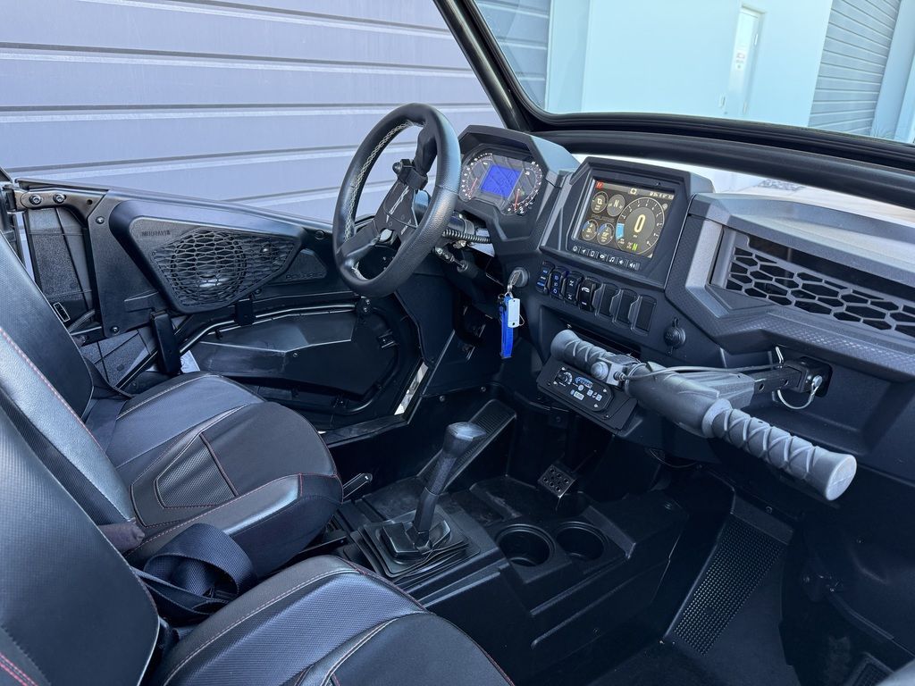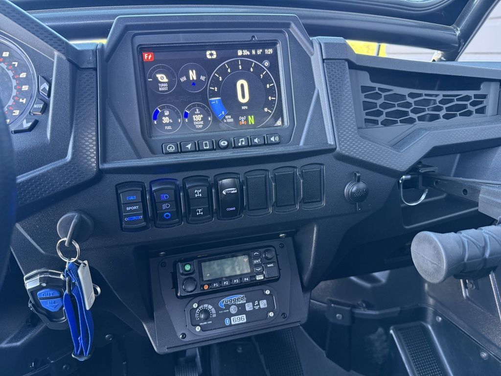 Its style alone is easy on the eyes, but the RZR Turbo S is built with purposeful intent. The cockpit has been designed for optimum line of sight, driving ergonomics and comfort. The race-inspired design comes through with a standard 4-point harness, flat bottom steering wheel and a level of intuitive control where you feel at one with the machine.