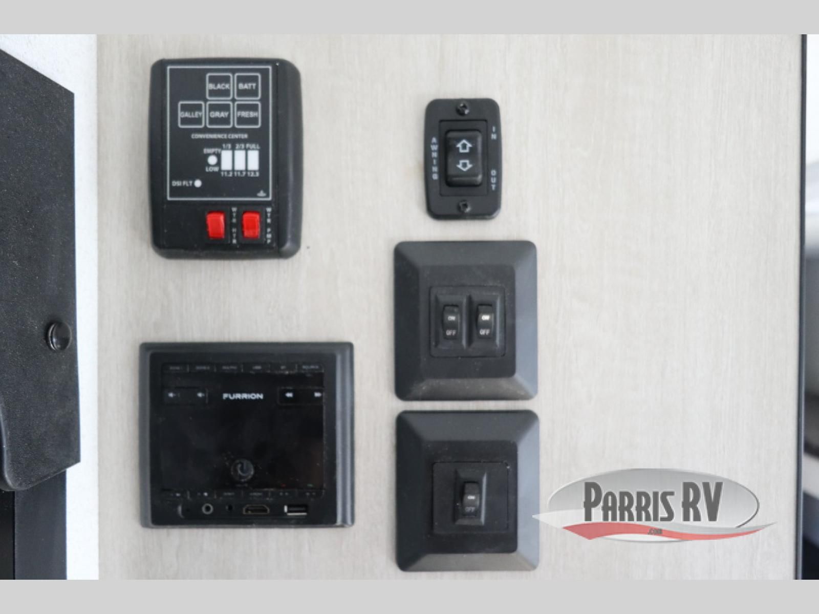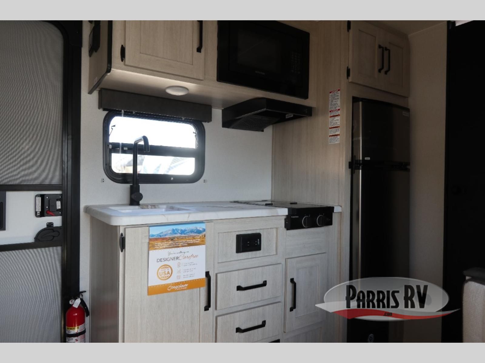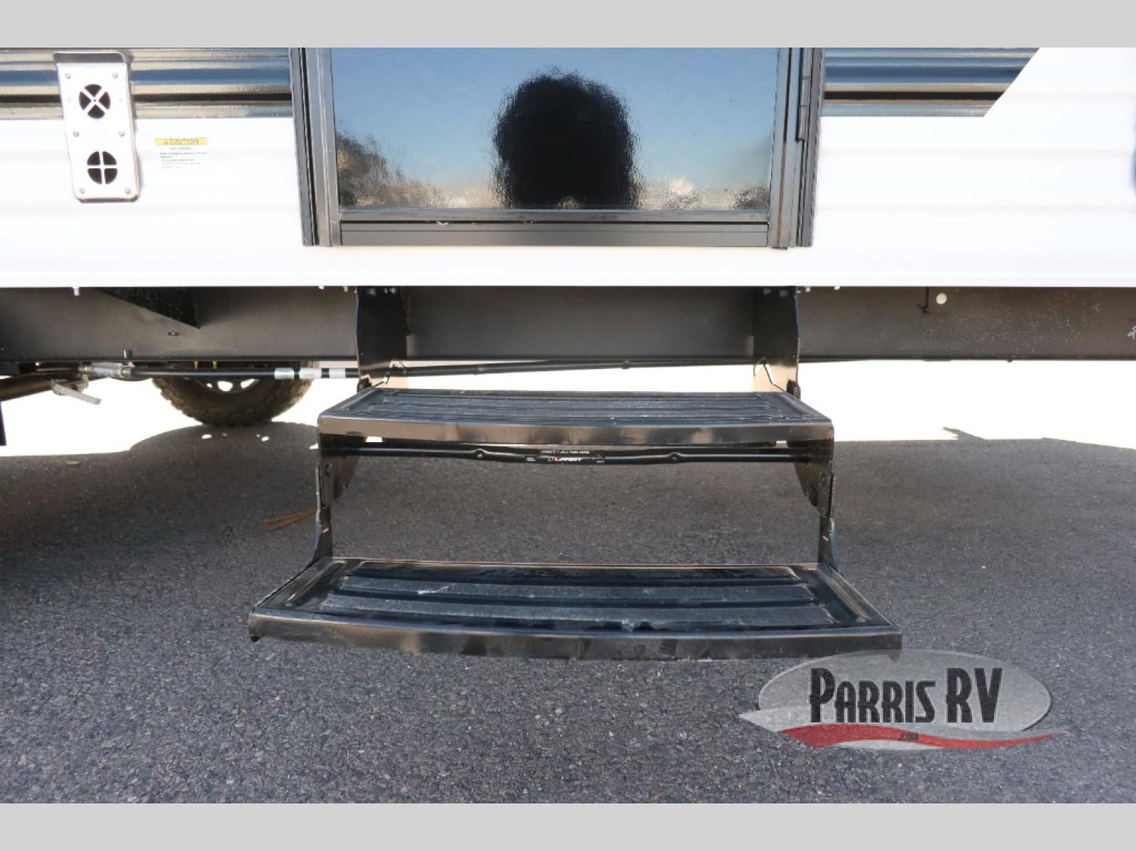 It will be so easy to enjoy camping trips in this single axle travel trailer! There is a front RV queen bed with flip-up storage at the foot of the bed for your belongings, and any additional guests can sleep on the bunk beds and sofa. A full kitchen includes a two-burner cooktop and microwave to cook meals each day, and the 12V black glass refrigerator will keep your food fresh. And a private bath with a toilet and shower will let you freshen up without having to use the camp's facilities!