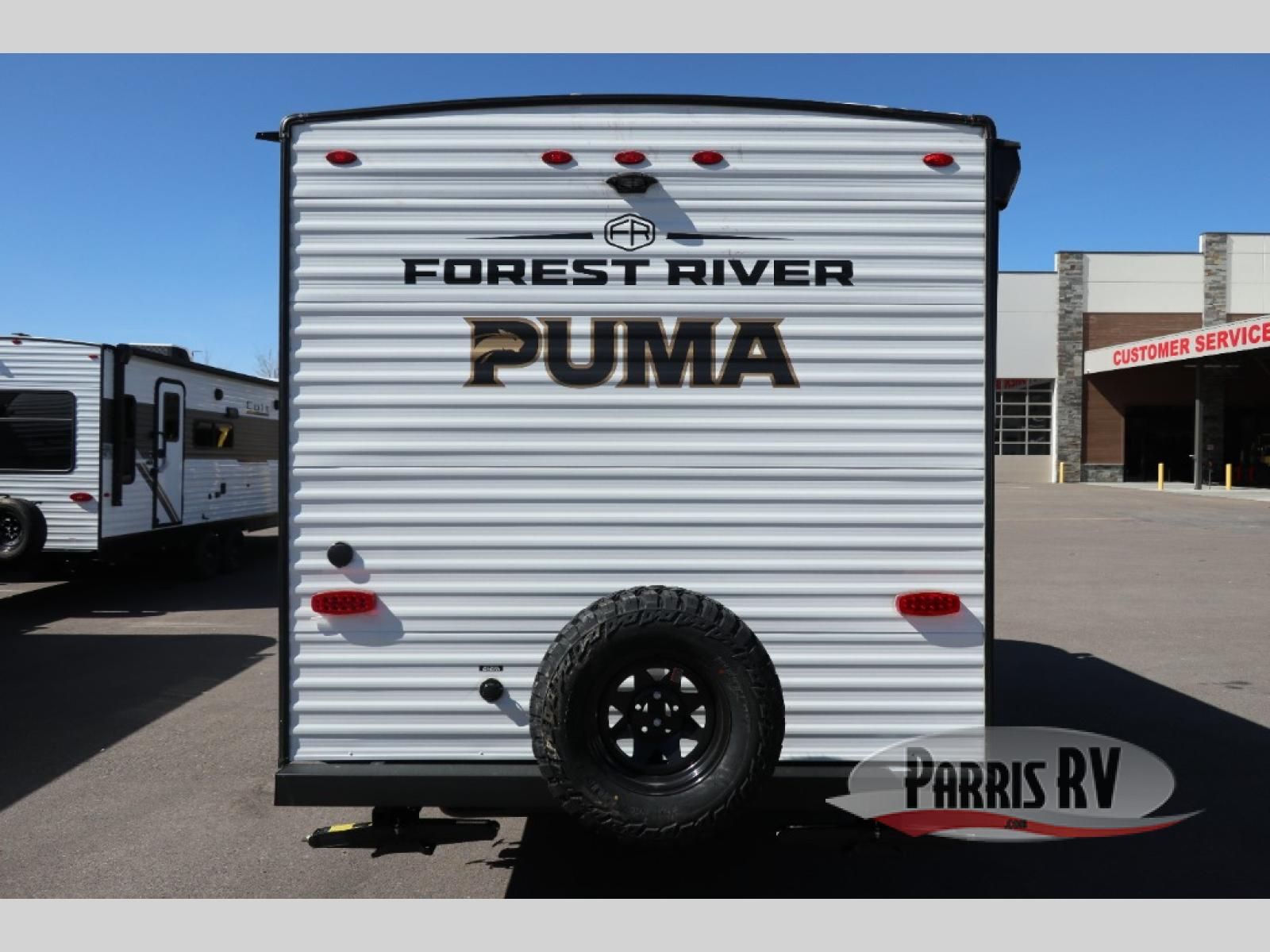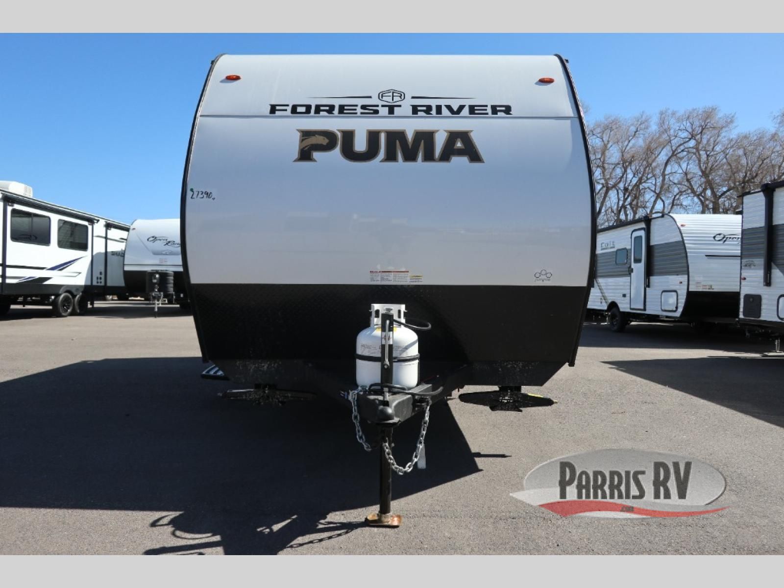 The Puma Camping Edition by Forest River offer an affordable travel trailer for rookie campers or seasoned RVers! They are built with 5/8" tongue and groove plywood flooring and a front diamond plate for added protection. There are also exterior magnetic baggage door latches, back up camera prep, a battery disconnect. Head inside to find Thermofoil countertops with a smooth drop edge, bedroom USB ports and outlets, and pleated shades in the living room.