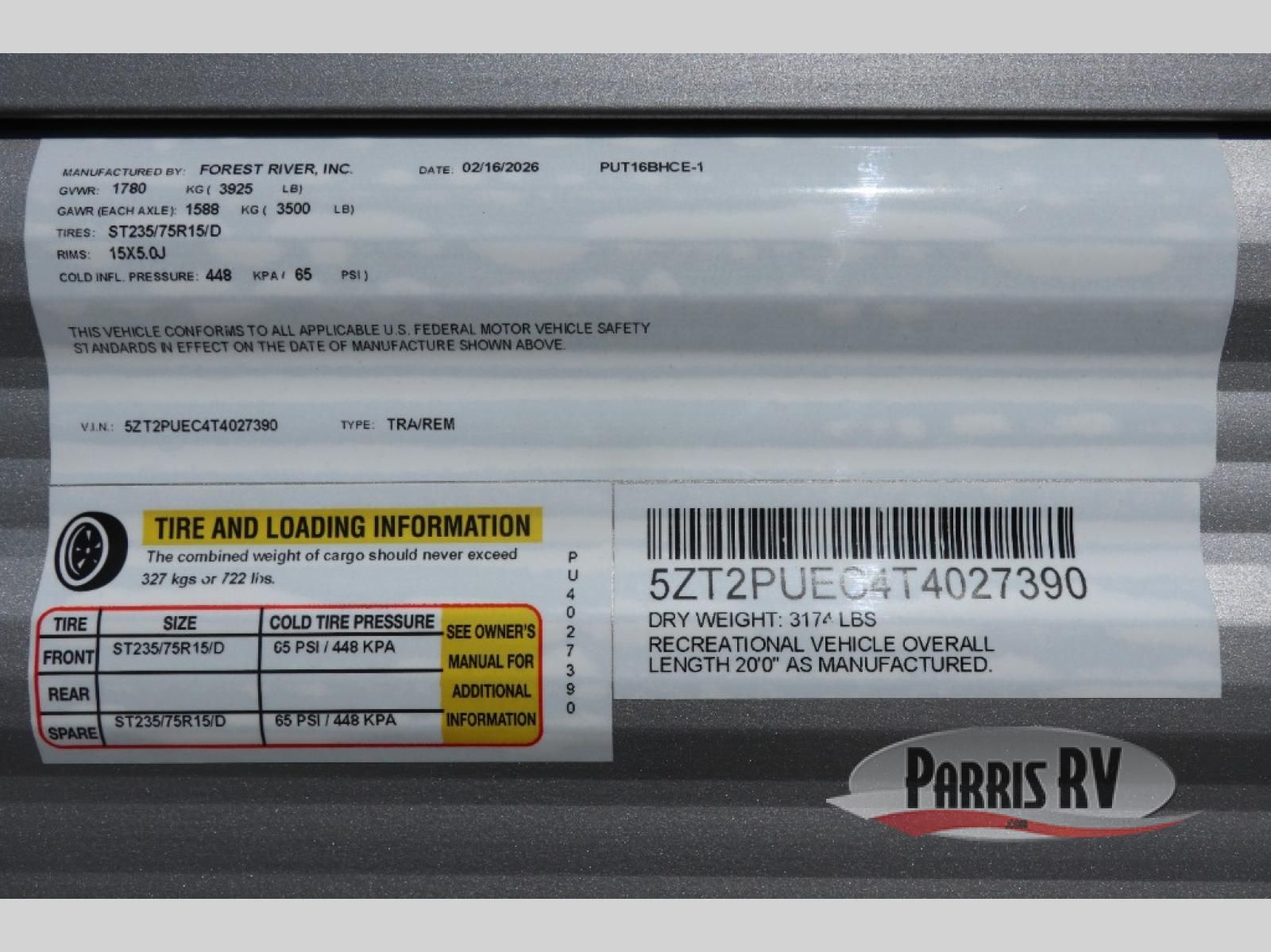 Forest River Puma Camping Edition travel trailer 16BHCE highlights: