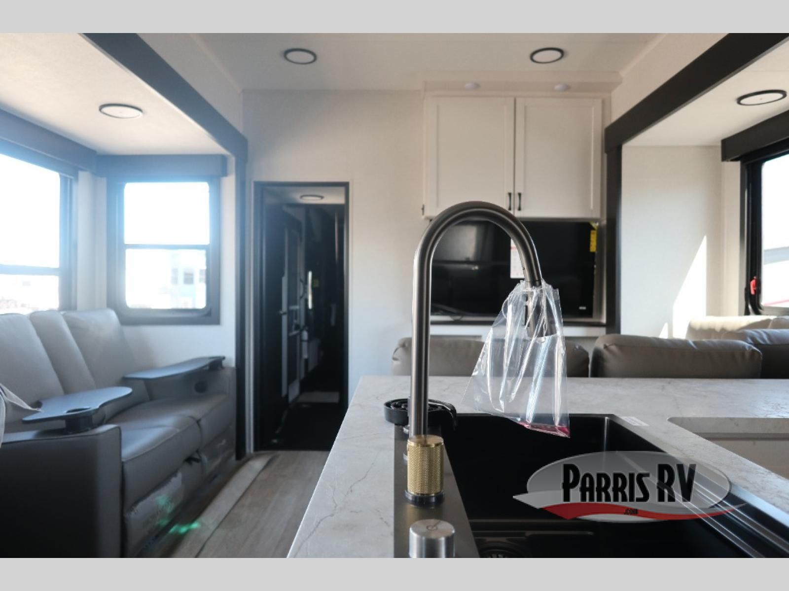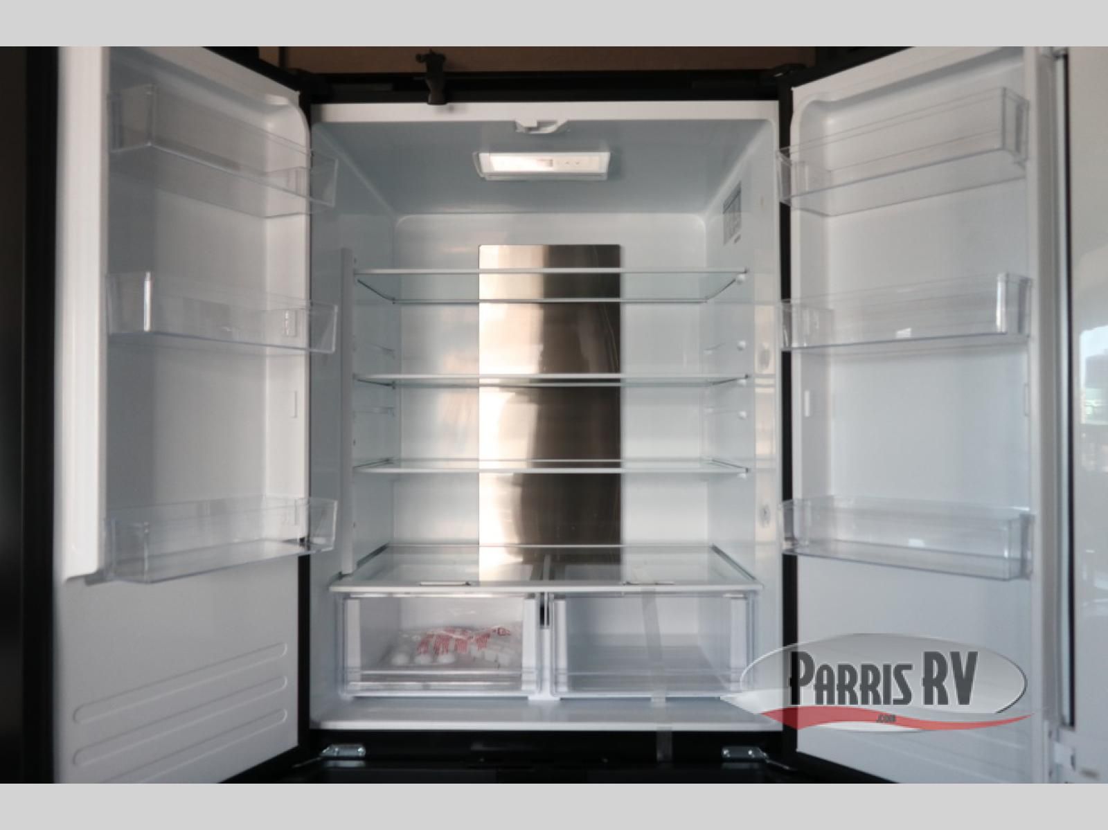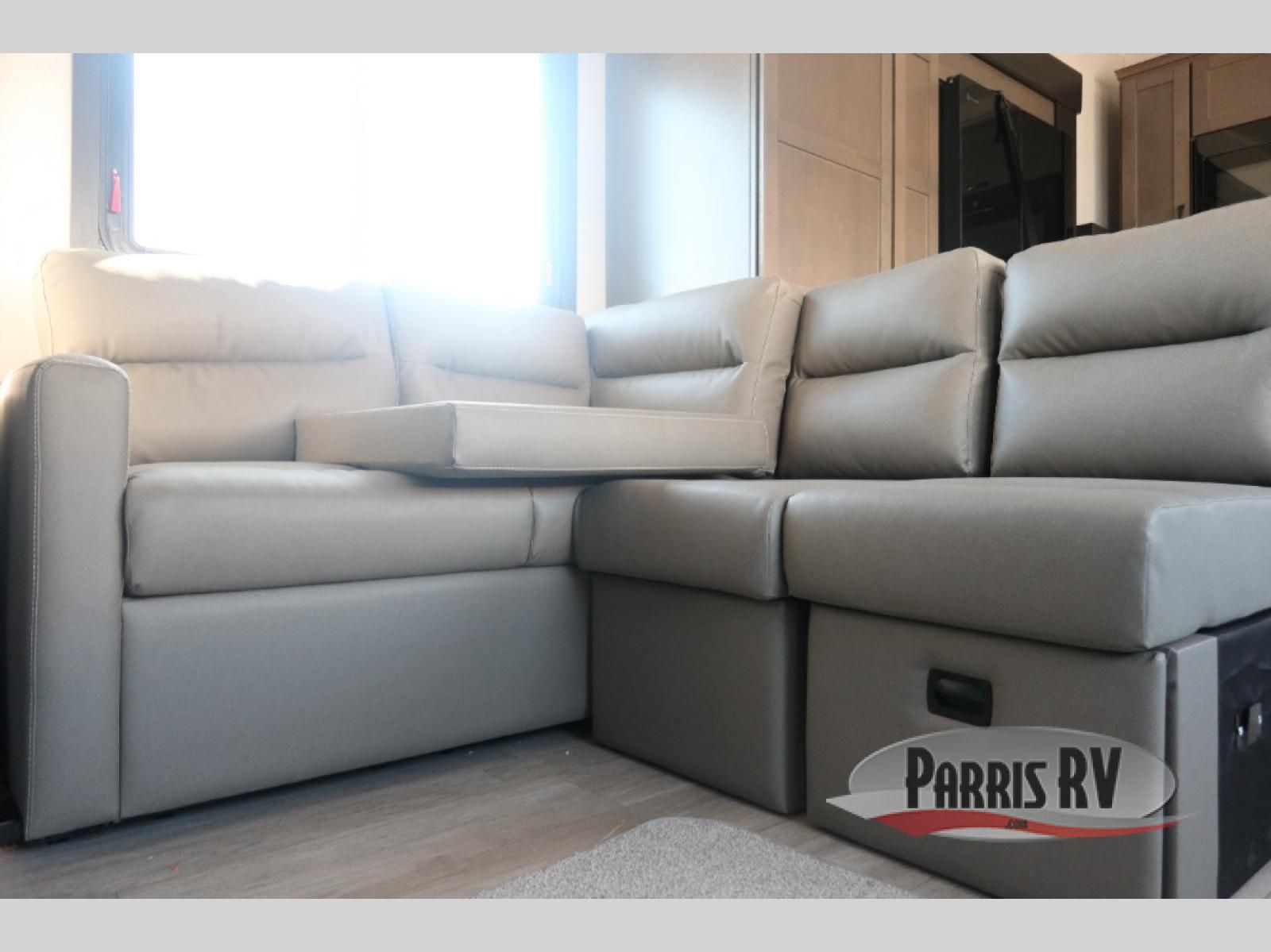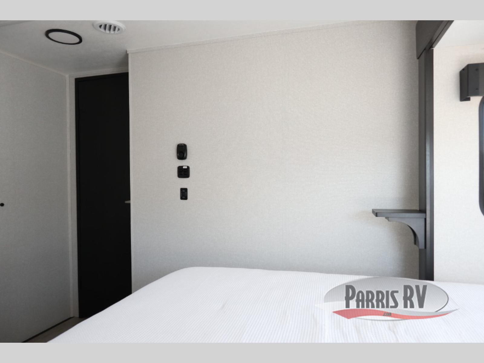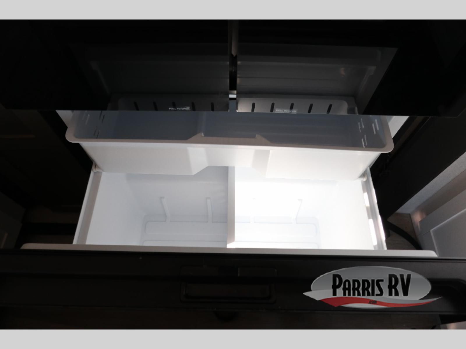 Get on the road with this toy hauler fifth wheel! The 14' garage is a playground for your toys, offering ample space for your ATV, motorcycle, or other gear. The loft above provides additional storage and an electric queen bed for a comfortable rest. The living room is a haven for relaxation, featuring an L-shaped sofa and a theater-style seat perfect for enjoying your favorite shows or movies on the TV. The kitchen is a culinary delight, equipped with a 12V refrigerator, microwave, overhead cabinets, and ample countertop space. The credenza with roll-out table is perfect for meal prep or serving, and the full bathroom provides a private space to freshen up, while the half bath option in the garage gives you more options. The cherry on top is that the front bedroom is a regal retreat, featuring a king bed, drawers, and a spacious walk-in closet.