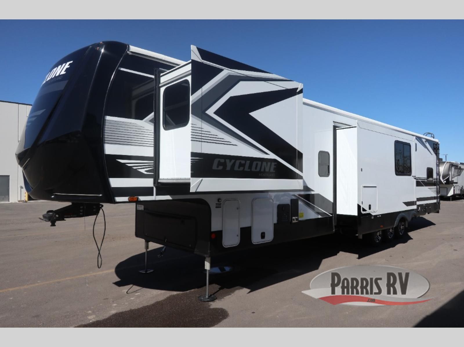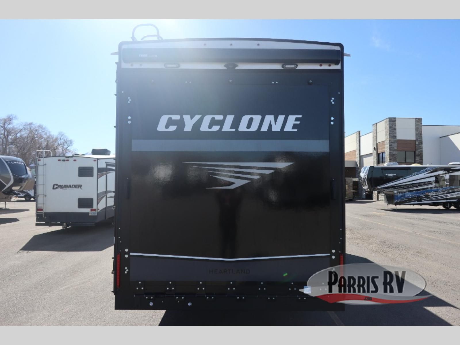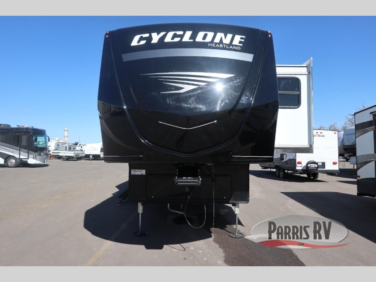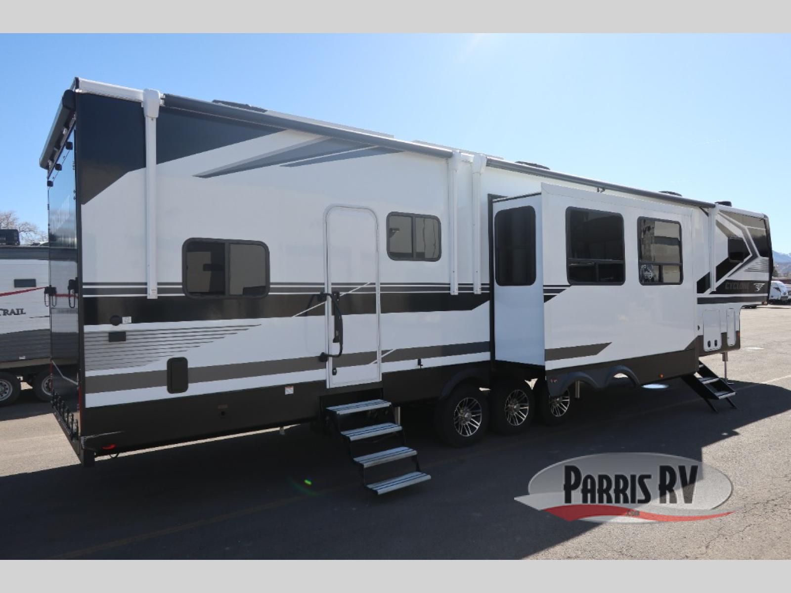Satisfy your wanderlust with a Heartland Cyclone fifth wheel toy hauler! You won't have to sacrifice any luxury either, with indulgent features like the ducted, fully enclosed, and heated underbelly provides added protection and warmth. Inside, the LED interior lighting throughout ensures that every corner of your RV is bright and inviting, and the bathroom skylight brings in natural light and fresh air, creating a welcoming and refreshing space. Plus, the central command center with built-in tank monitoring keeps you informed and in control, making it easy to manage your resources. Also, the camping in comfort package includes diverse features such as Dexter axles with ABS and tow assist with sway mitigation, and the Keyed-Alike lock system ensures that all your locks are keyed the same, providing added security and convenience. Come find the perfect model for you today!