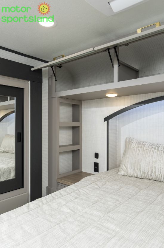 Adventure-Ready Design: Built tough for off-grid exploration with enhanced durability and ample storage for all your gear. Modern Luxury: Indulge in premium interiors, featuring sleek finishes, high-tech appliances, and ambient LED lighting for a home-like feel. Spacious Family Living: Multiple sleeping configurations, including bunks, and a roomy lounge area ensure everyone travels in comfort. Smart Technology: Stay connected with innovative RV systems, making every trip seamless and stress-free. Outdoor Versatility: An exterior kitchen and expansive awning create the ultimate setup for al fresco dining and stargazing.