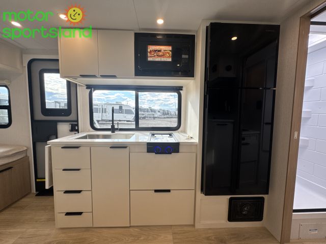Versatile Sleeping Options: The 2108TB floorplan boasts twin beds that easily convert to a king-size bed, offering flexibility for couples or small families. Modern Interior Design: Revel in sleek finishes, high-quality materials, and a well-appointed kitchen with ample storage and appliances for gourmet meals on the go. Compact Yet Spacious: Maximize every inch with a smart layout that prioritizes space without sacrificing essential amenities, ideal for easy towing. Adventure-Ready Exterior: Enjoy outdoor living with a power awning and exterior kitchen setup, perfect for campsite cookouts and stargazing nights. Advanced Tech Features: Stay powered up and connected with energy-efficient systems and smart RV technology tailored for today’s travelers.
