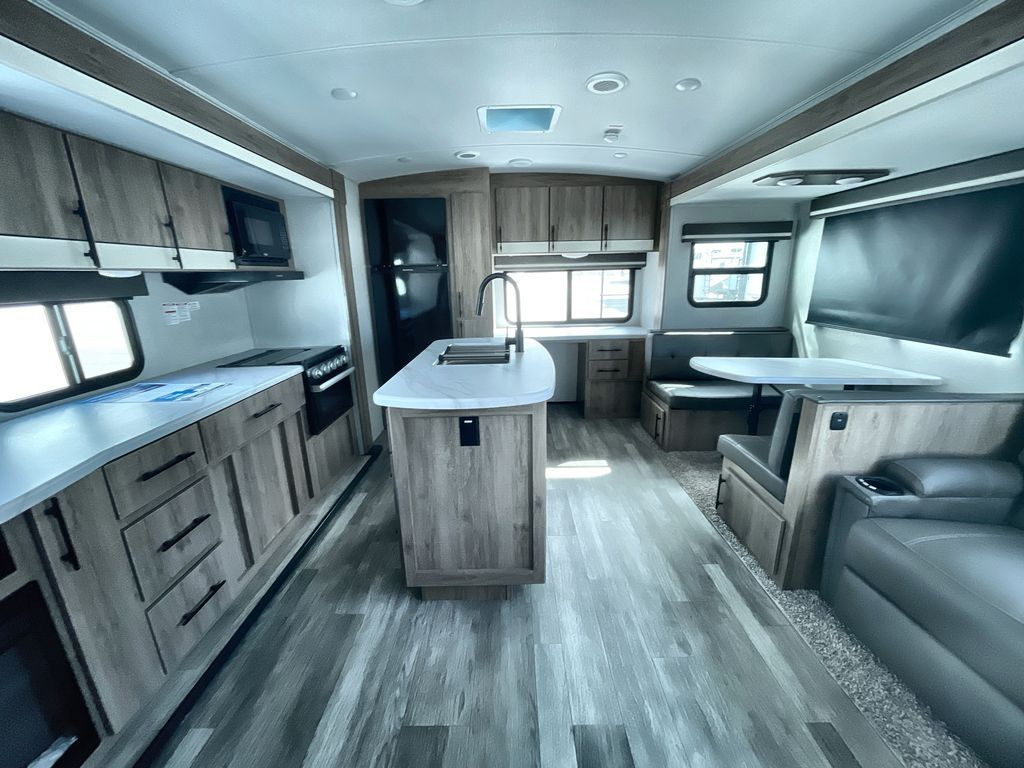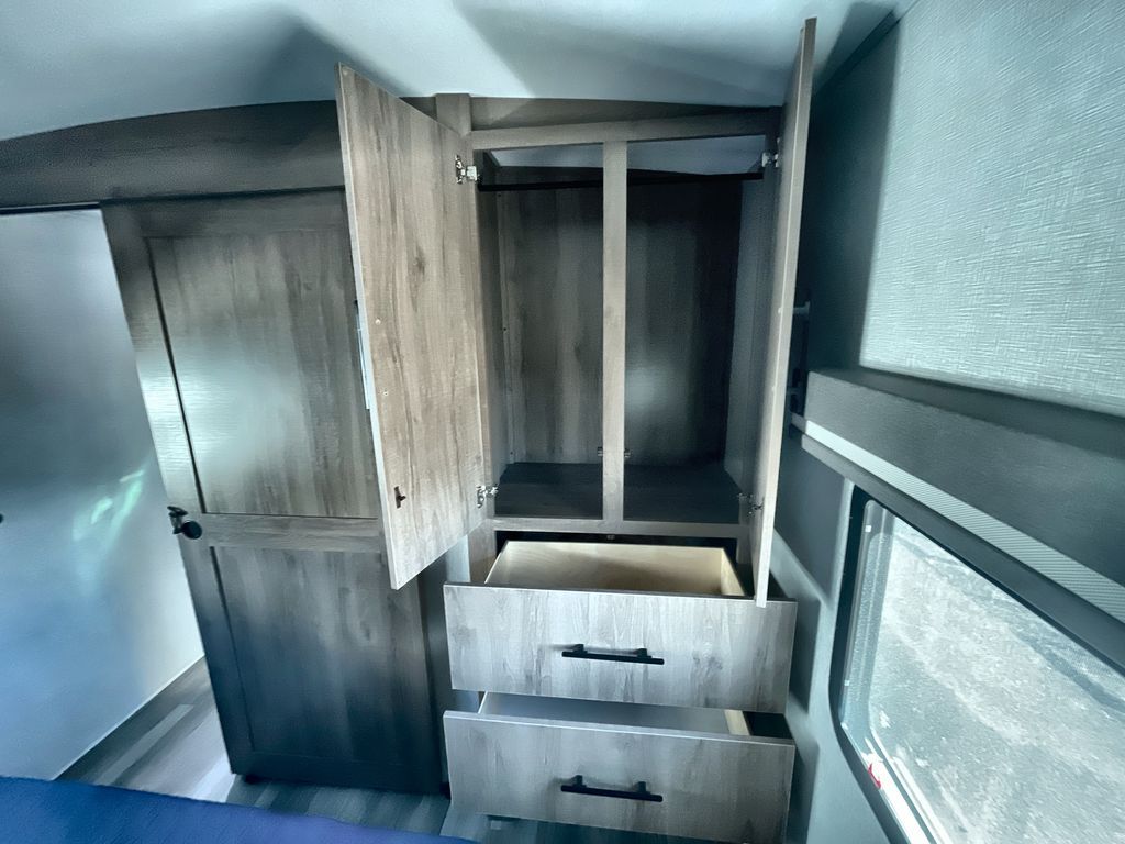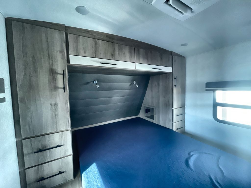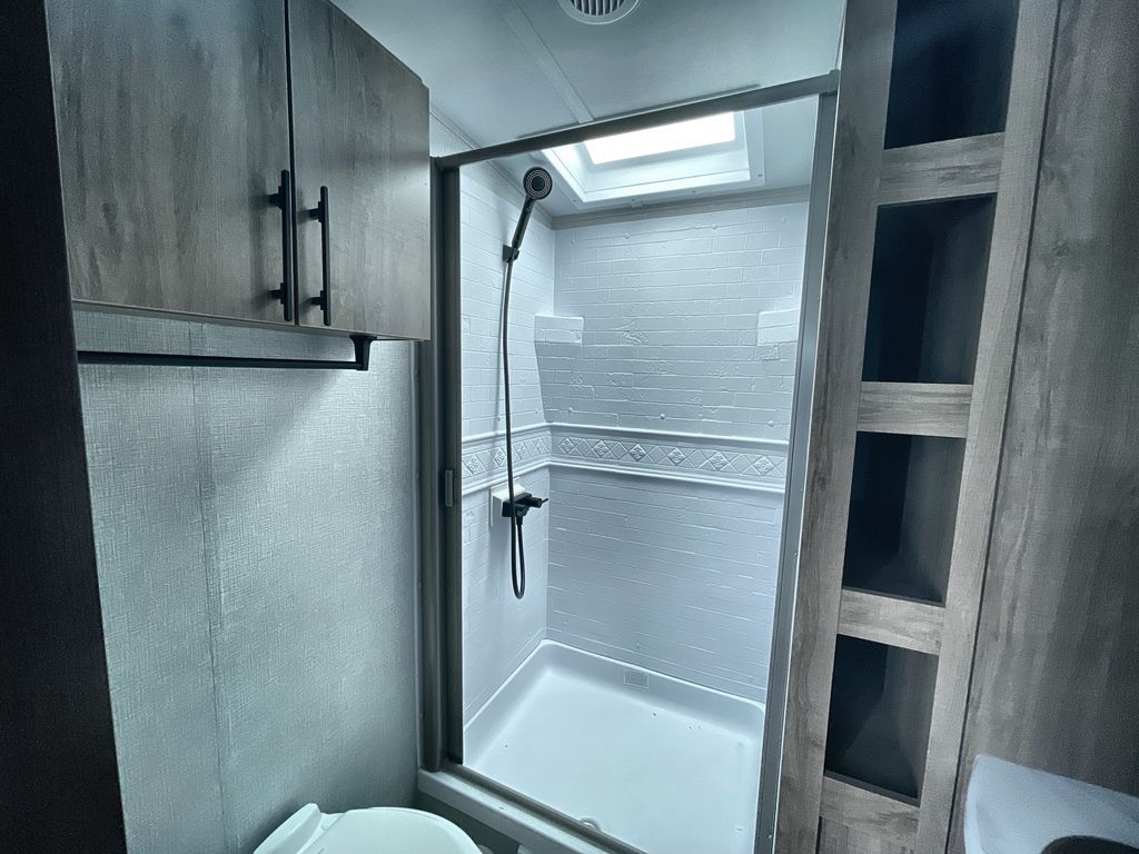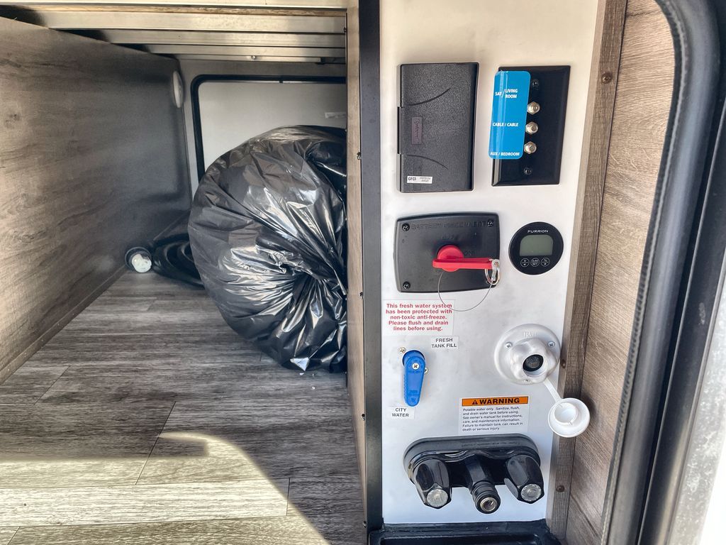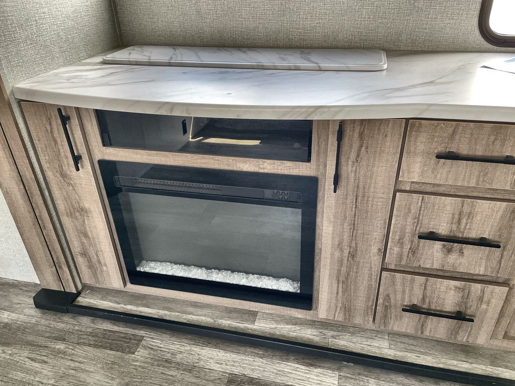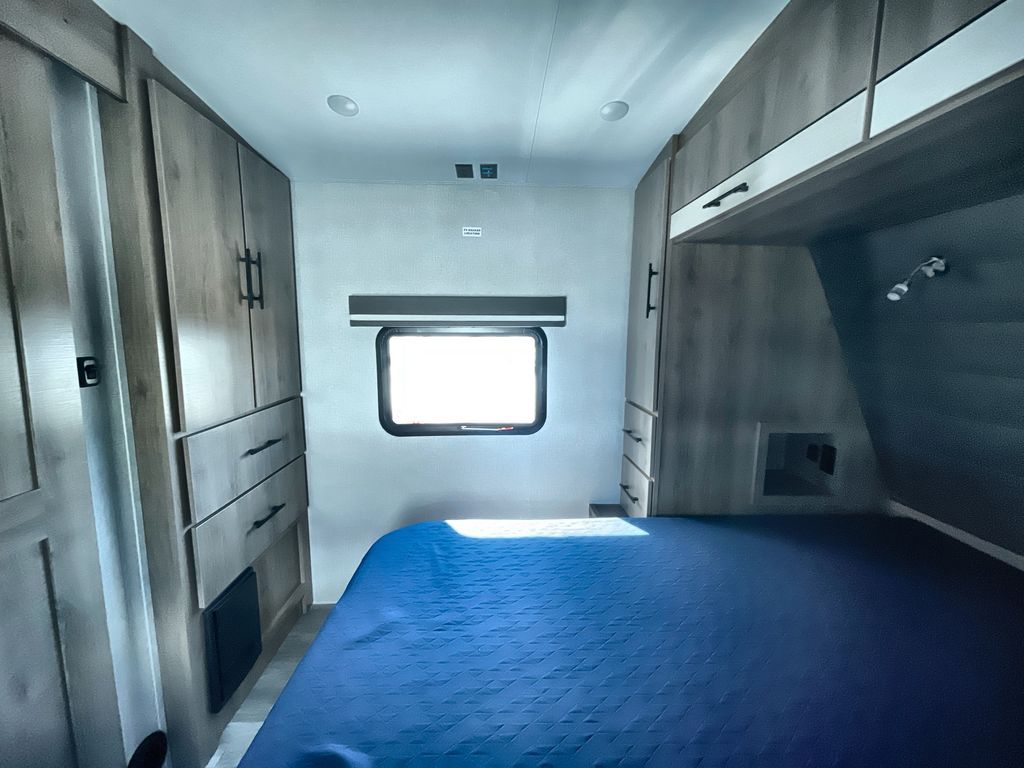 Unobstructed Pass-Through Storage, HDTV On Swing Arm, USB Charging Station, Wardrobe Cubbies With 110V Outlet And USB Charging Station, All-In-One Utility Station, Tankless Water Heater, Power Tongue Jack, 10 CU FT Double Door 12V Refrigerator, 25 AMP Charge Controller, 165 W Roof Mounted Solar Panel, Walk On Roof, Rear Ladder, High Efficiency Air Conditioner, And So Much More!