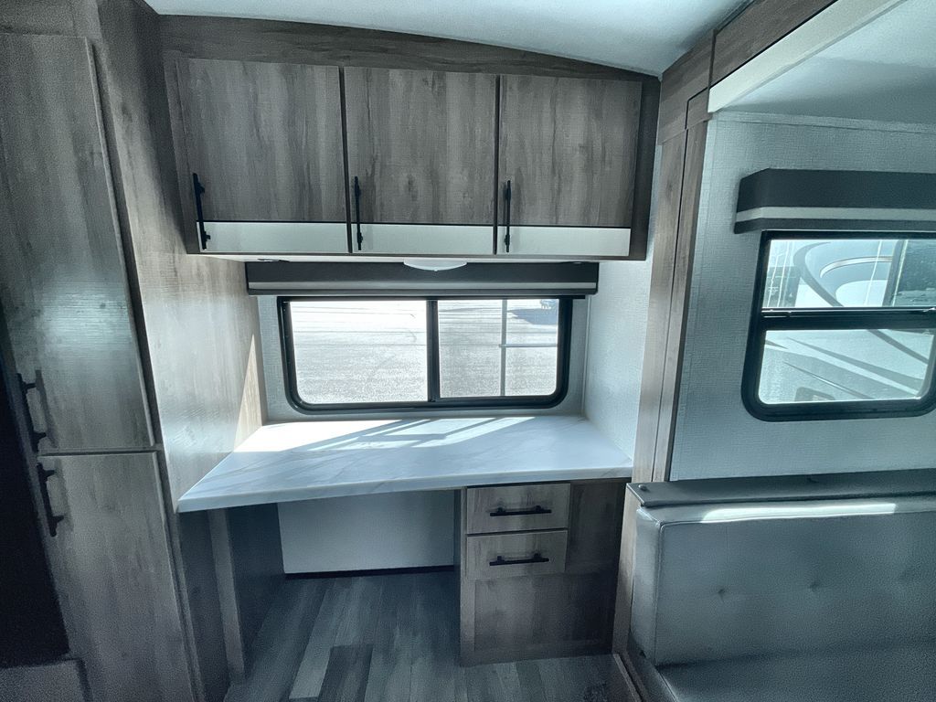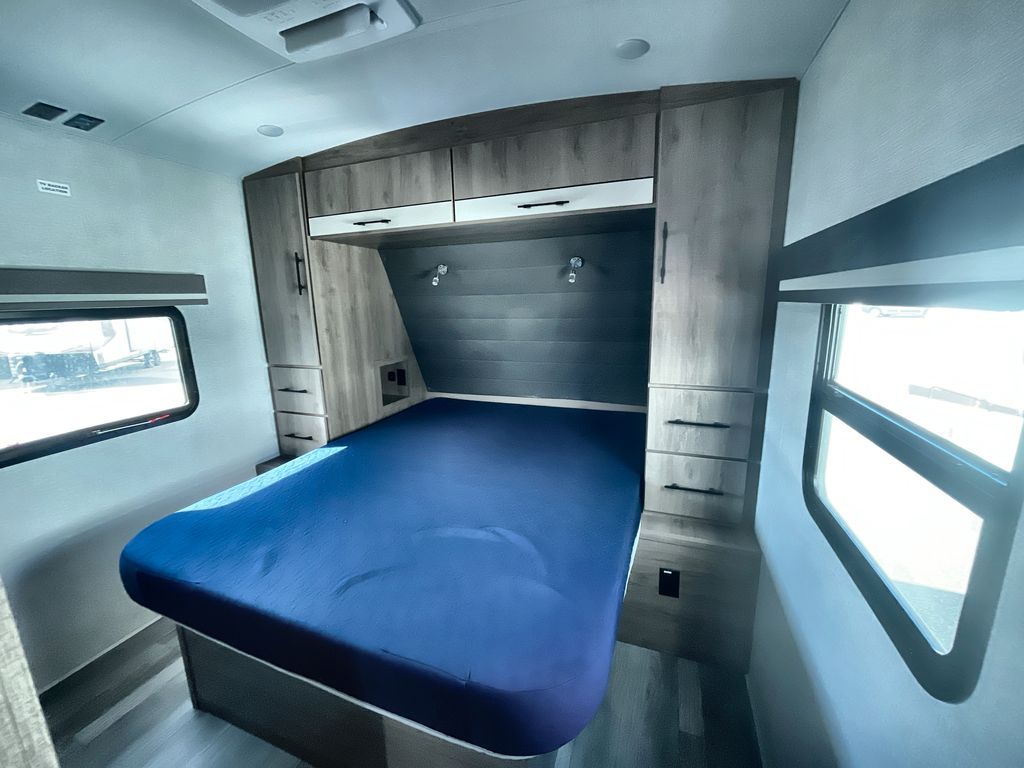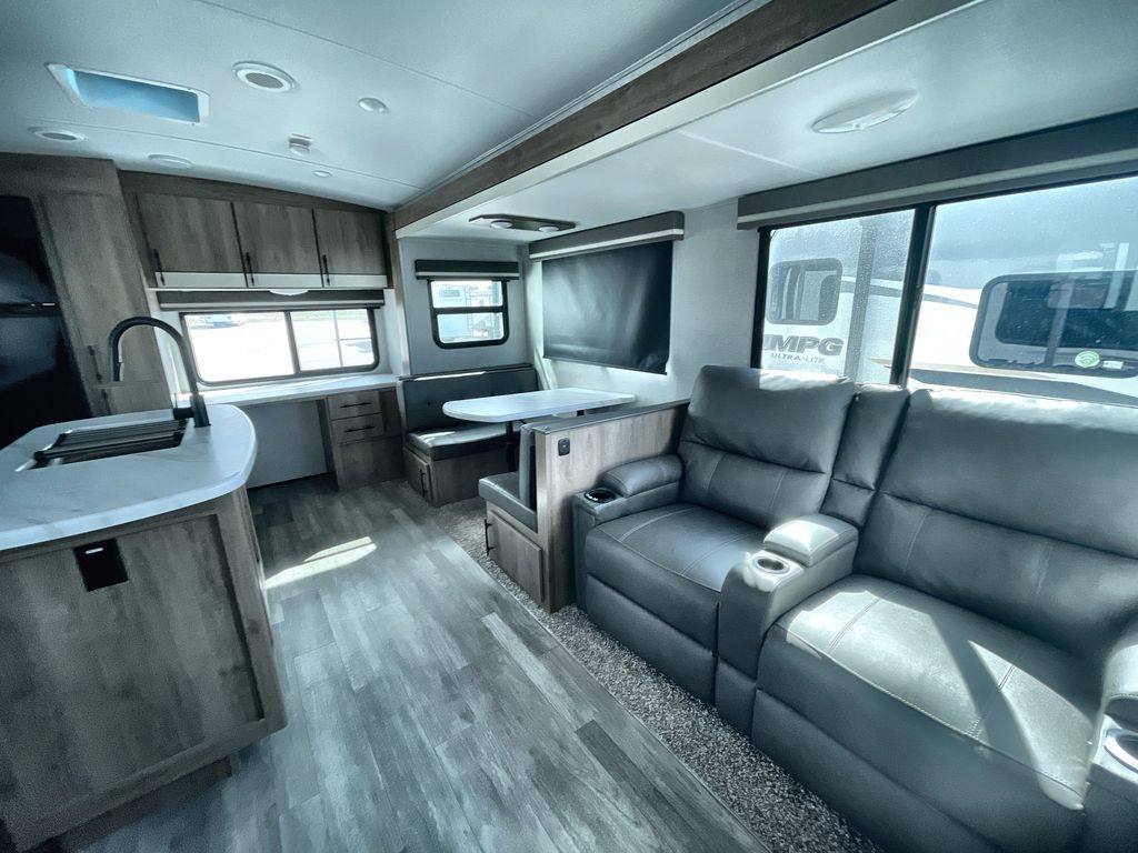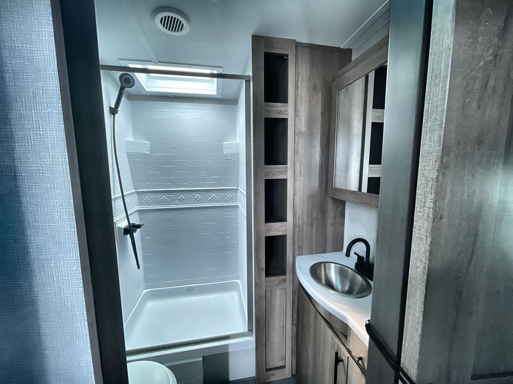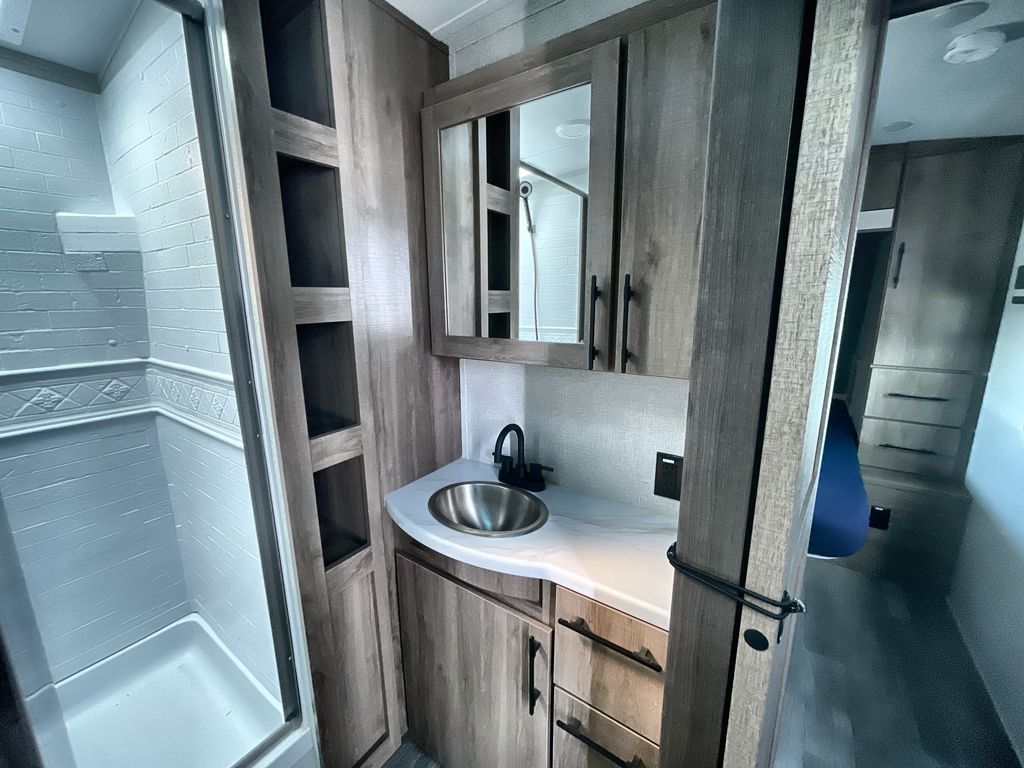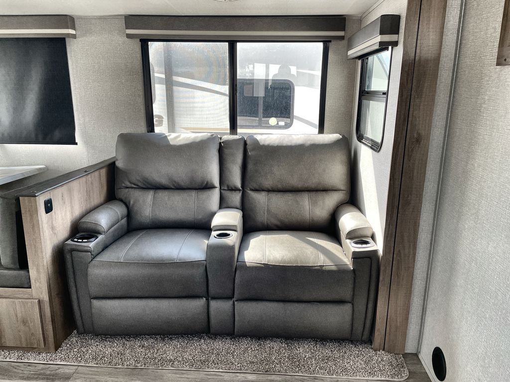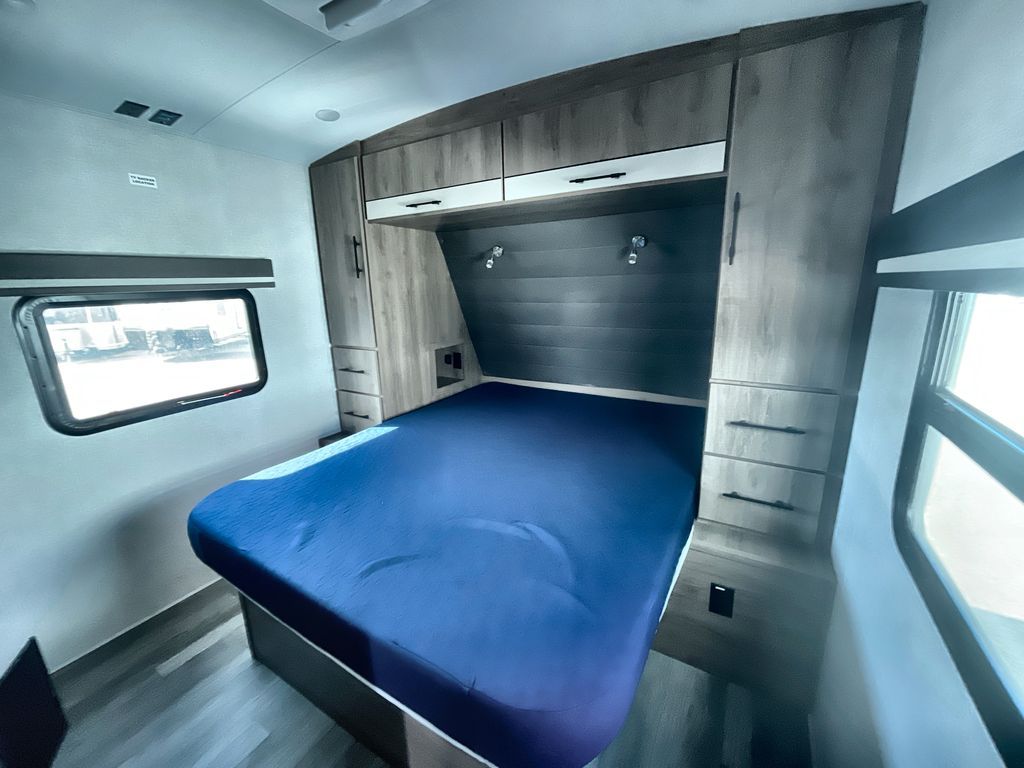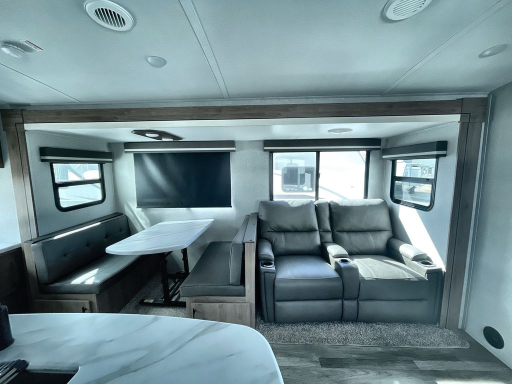 Unobstructed Pass-Through Storage, HDTV On Swing Arm, USB Charging Station, Wardrobe Cubbies With 110V Outlet And USB Charging Station, All-In-One Utility Station, Tankless Water Heater, Power Tongue Jack, 10 CU FT Double Door 12V Refrigerator, 25 AMP Charge Controller, 165 W Roof Mounted Solar Panel, Walk On Roof, Rear Ladder, High Efficiency Air Conditioner, And So Much More!