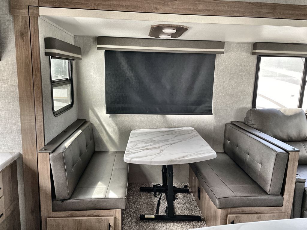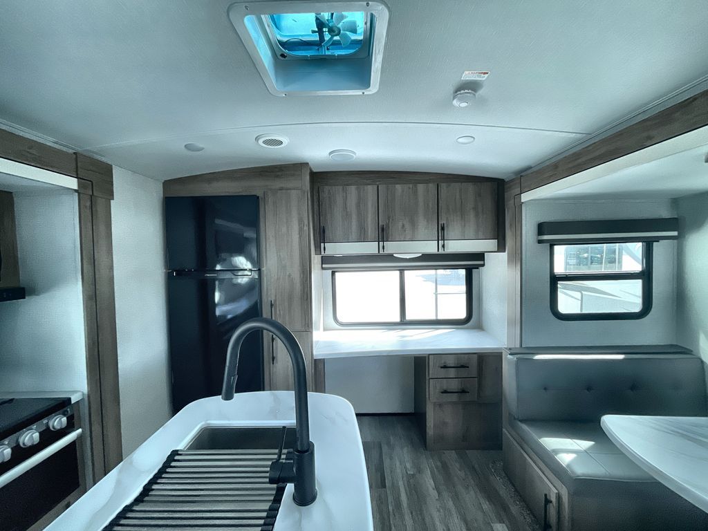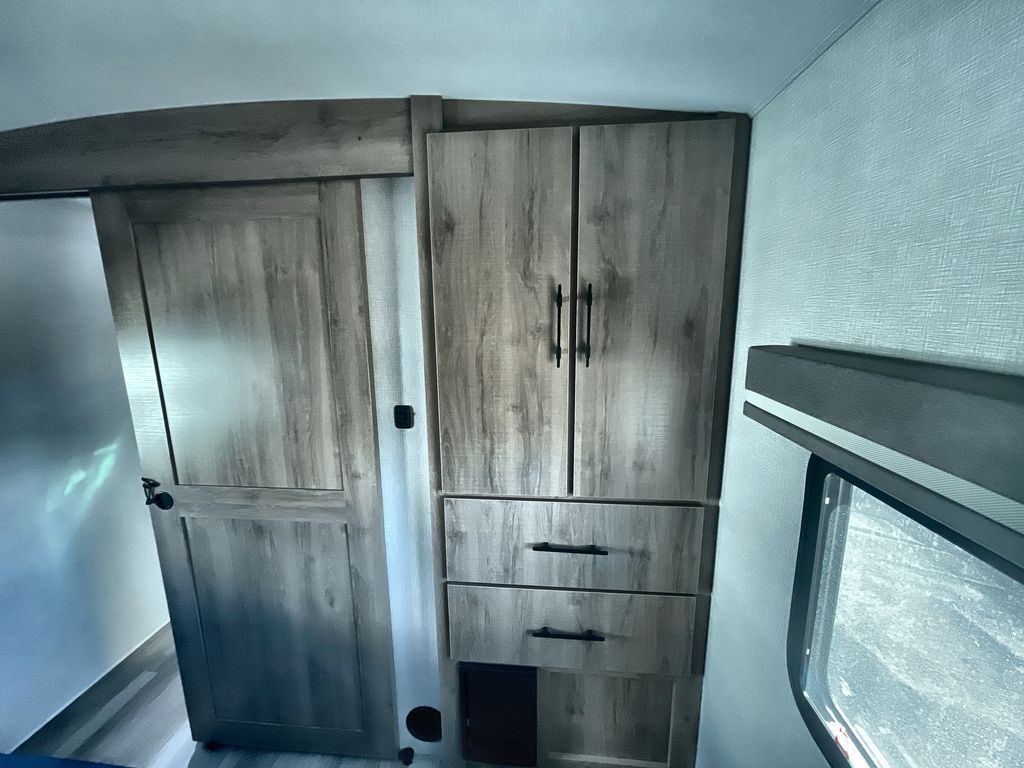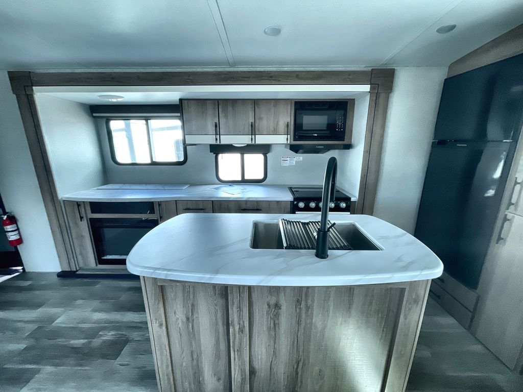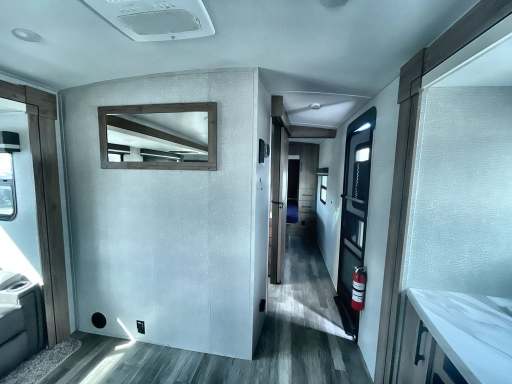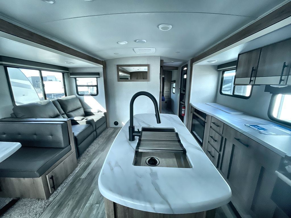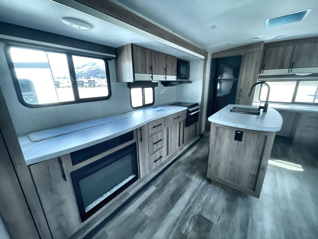 Unobstructed Pass-Through Storage, HDTV On Swing Arm, USB Charging Station, Wardrobe Cubbies With 110V Outlet And USB Charging Station, All-In-One Utility Station, Tankless Water Heater, Power Tongue Jack, 10 CU FT Double Door 12V Refrigerator, 25 AMP Charge Controller, 165 W Roof Mounted Solar Panel, Walk On Roof, Rear Ladder, High Efficiency Air Conditioner, And So Much More!