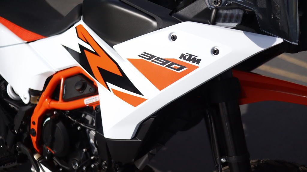 2026 KTM 390 Adventure R SUPREMELY CAPABLE We have to say it - the KTM 390 ADVENTURE R is the most off-road capable middleweight adventure bike in its segment. Yes, it's a bold claim, but with a 399cc powerplant, true rally-inspired design, 230 mm adjustable suspension, and a 21/18"" wheel split, this new addition to the KTM R stable simply rewrites the rulebook. Features may include: ON-ROAD CONFIDENCE Engine Boasting the latest generation in LC4c engines, the KTM 390 ADVENTURE range muscles up with 399 cc, more power, smoother acceleration, and lighter overall weight than before. Drawing from years of experience in the small engine game, the KTM 390 ADVENTURE R also features an improved gearbox and an optimized cylinder head. HIT THE HARD TRACK Off-road Ready Suspension Upfront, a 43 mm WP APEX open cartridge fork with 230 mm travel keeps things in check, with adjustable compression and rebound in 30 easy clicks to easy adjustment. On the rear, any big hits are handled by a WP APEX Separate piston shock absorber with 230 mm of travel. The shock is also rebound adjustable with 20 clicks on the fly, while preload adjustment can be taken care of with a tool. SUPERIOR CONTROL Bodywork The KTM 390 ADVENTURE range features distinctive KTM-style bodywork and graphics, providing excellent ergonomics and an aggressive look inspired by KTM's vast Rally racing heritage. This can be seen in everything from the headlight mask to the front fender. The tank spoilers and rear side panels are slightly wider than the seat for optimized control when standing on the pegs, while the shape of the fuel tank is optimized to offer freedom of movement when tackling tricky technical terrain. A robust engine guard also makes its intentions known by protecting the engine and exhaust when venturing off the tarmac into the dirt. ALL-ROUND COMFORT Frame The KTM 390 ADVENTURE range features an ultra-lightweight yet extremely stable trellis 2-piece frame. This frame provides the backbone and is a major element accounting for its nimble handling and forgiving balance of flex and stiffness.