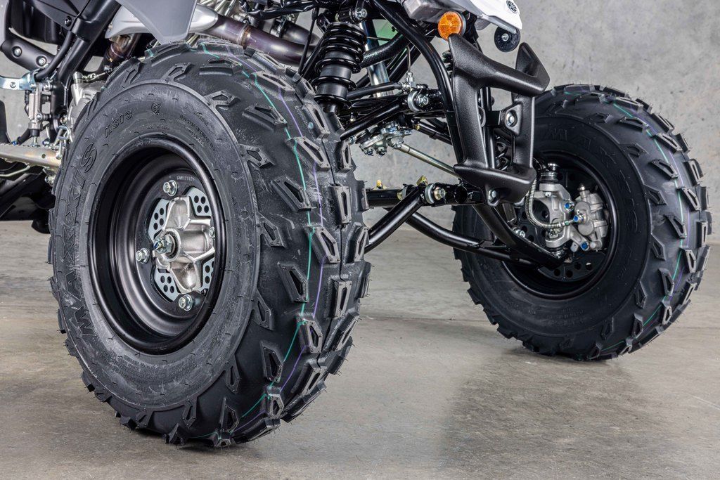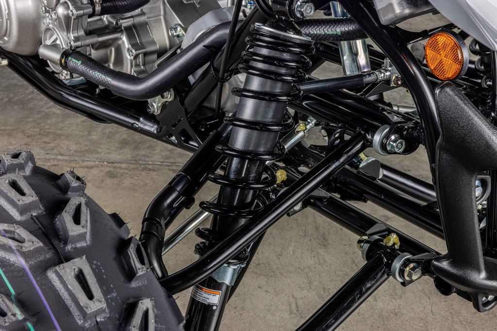 YZ-style piggyback rear shock that gives 10.1-inch wheel travel along with preload adjustment.