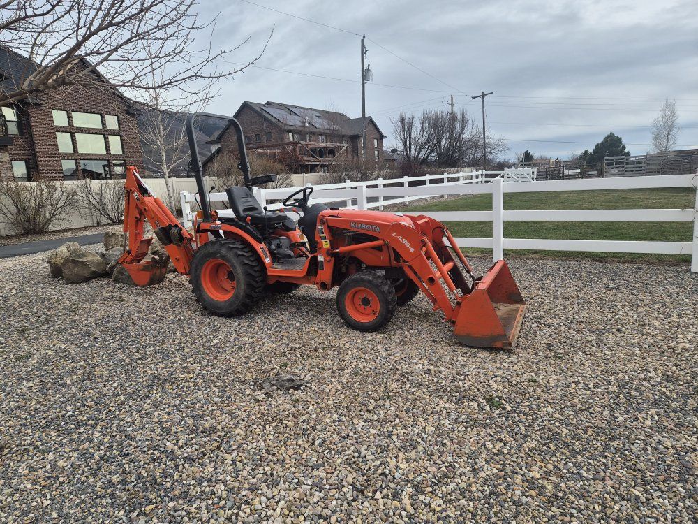 This has been a great Tractor. The reason I am selling is because I purchased a bigger tractor. Recently serviced with hydraulic flush. 650 hours. Hydrostatic transmission. Pats quick connect. Backhoe. Grader blade. Land Pride reverse tiller RTR 1250 for an extra $1,400.
