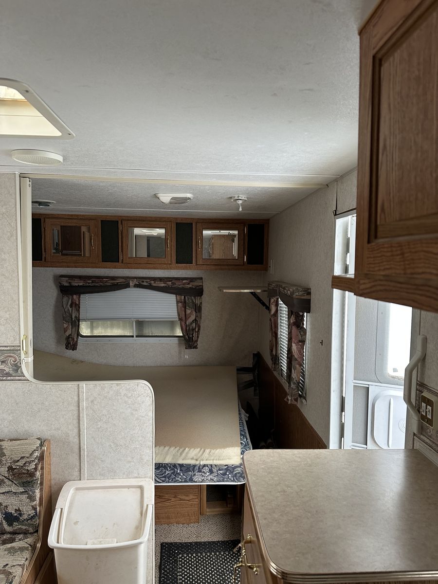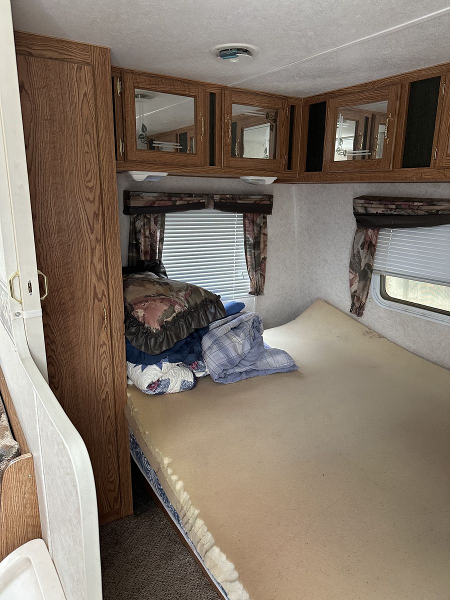 Will trade! I have a nice camper for sale that can sleep 5. It has two bunk beds in the back, awning, and a double size bed up front. A/C and heater work great. There is also an outdoor shower. There was water damage before we got the camper, it was fixed, but some of the wood was not. Other than that, it’s a nice camper and pulls great. Comes with a stabilizer hitch. Asking 4,000 OBO I am willing to trade for a one ton pickup. It needs to have a gooseneck hitch and reliable to pull horses and hay!