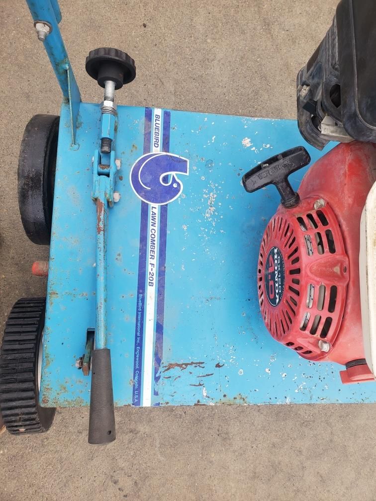 Power Rake Bluebird 4 hp. Honda engine, it's in good working condition.