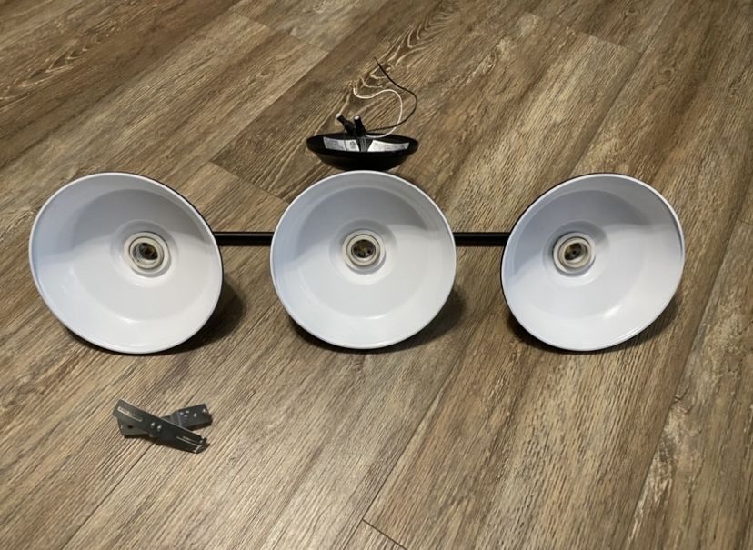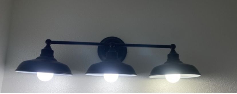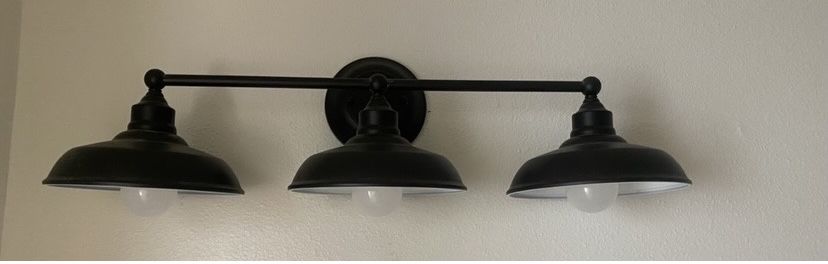 Triple Wall Sconce / Lights ~ Matte Black Bathroom Vanity Farmhouse Light with Metal Shades, in great condition. Smoke free home.