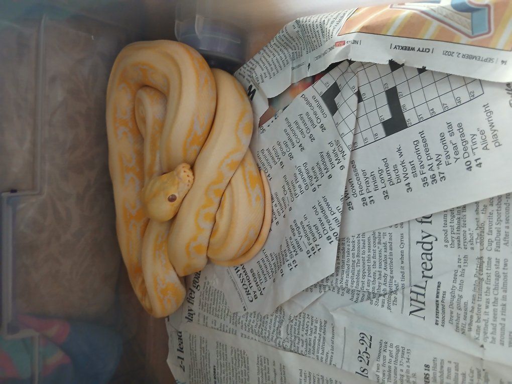CashAppapprox 1.5yrs old, very very sweet girl, unfortunately she does have significant "wobble" issue , she eats she sheds and she's growing just fine, as long as she doesn't get to excited she's fine but does "corkscrew" when excited, you must have some experience in keeping retics, I can include a suitable but not long term enclosure for asking price, you will have to provide your own lighting and heat source, located in hooper $350 firm, no delivery
