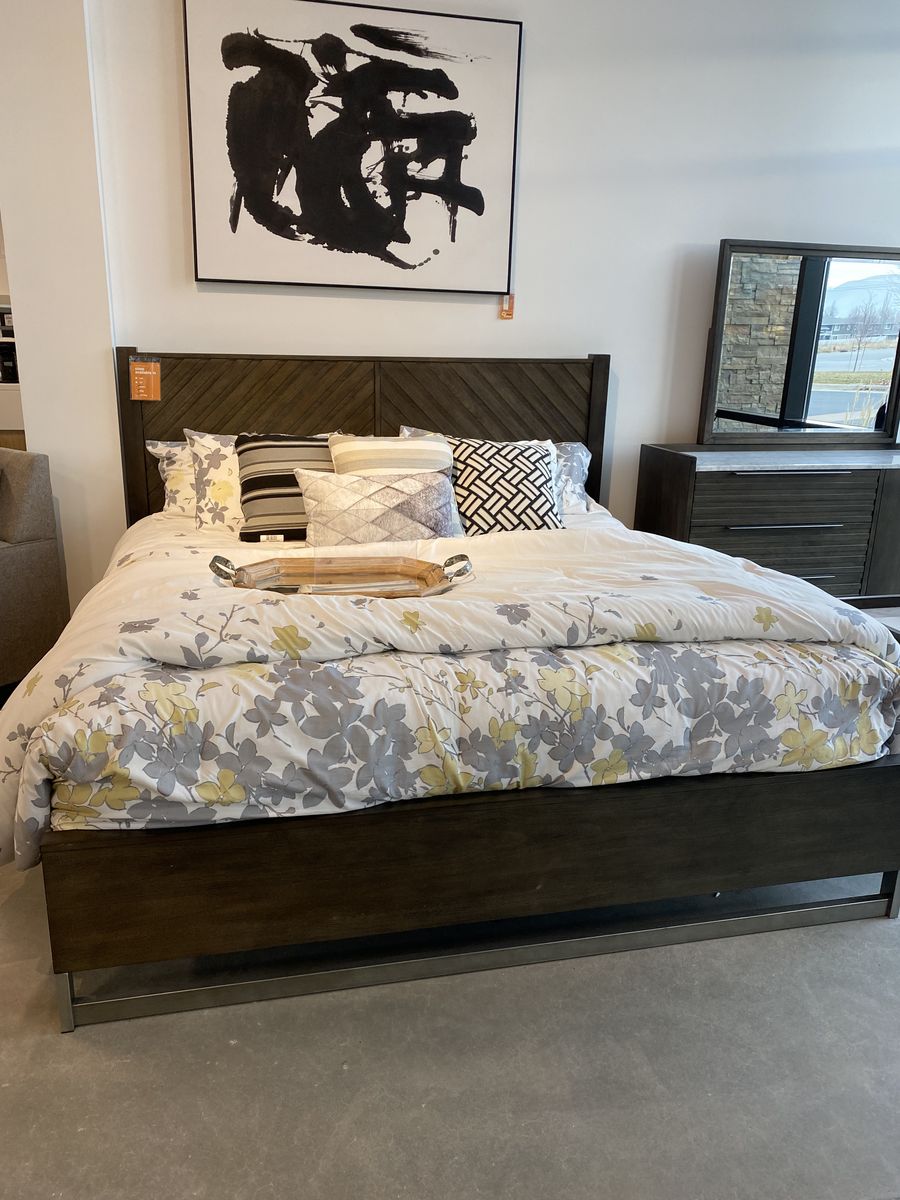 VenmoThis is a wood and metal bed frame that requires a box spring. Bought the floor model that came with a king and I had to buy the queen bed frame so it was never used