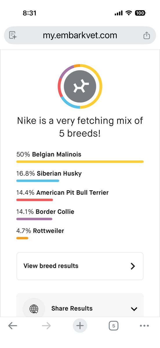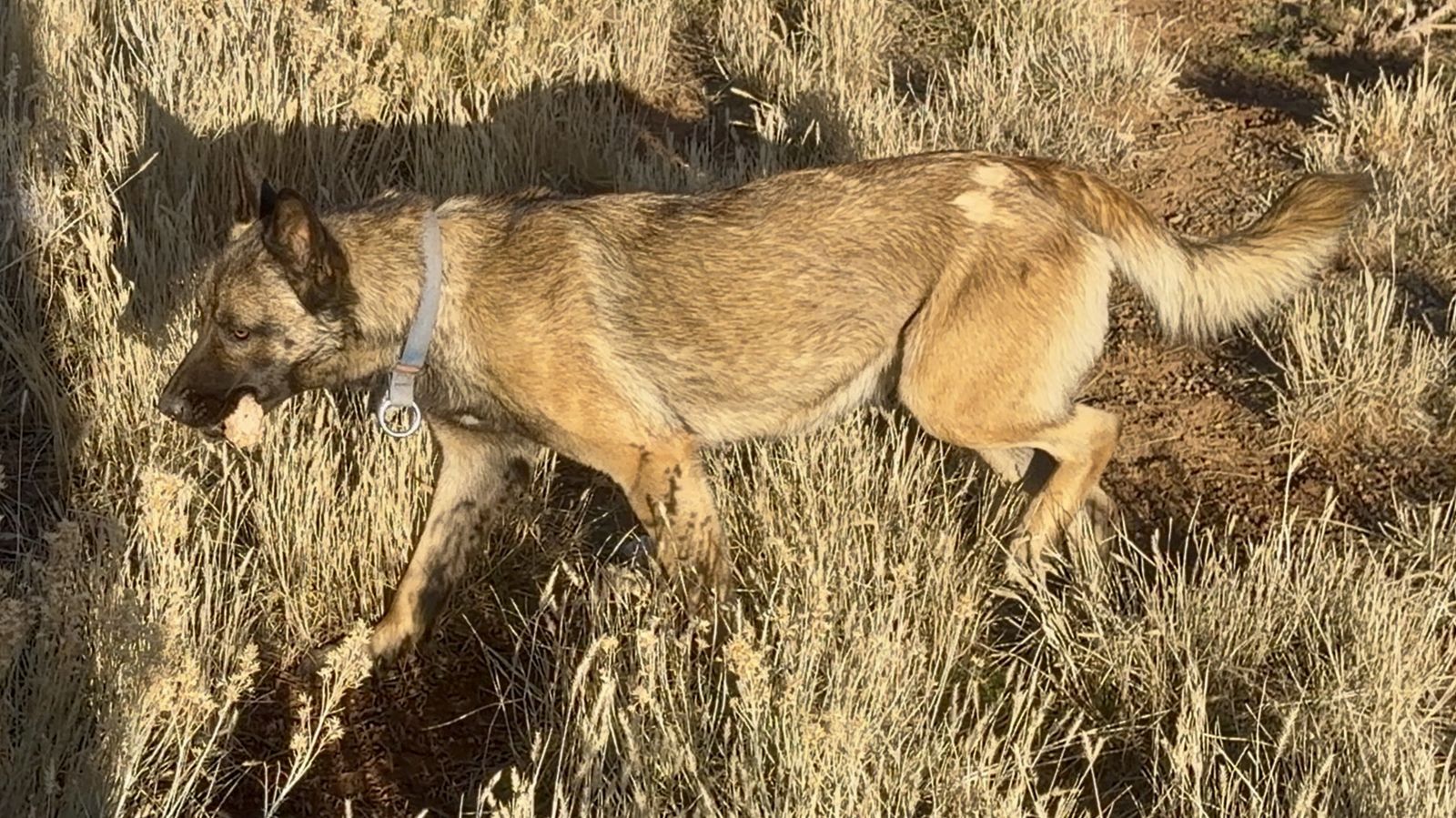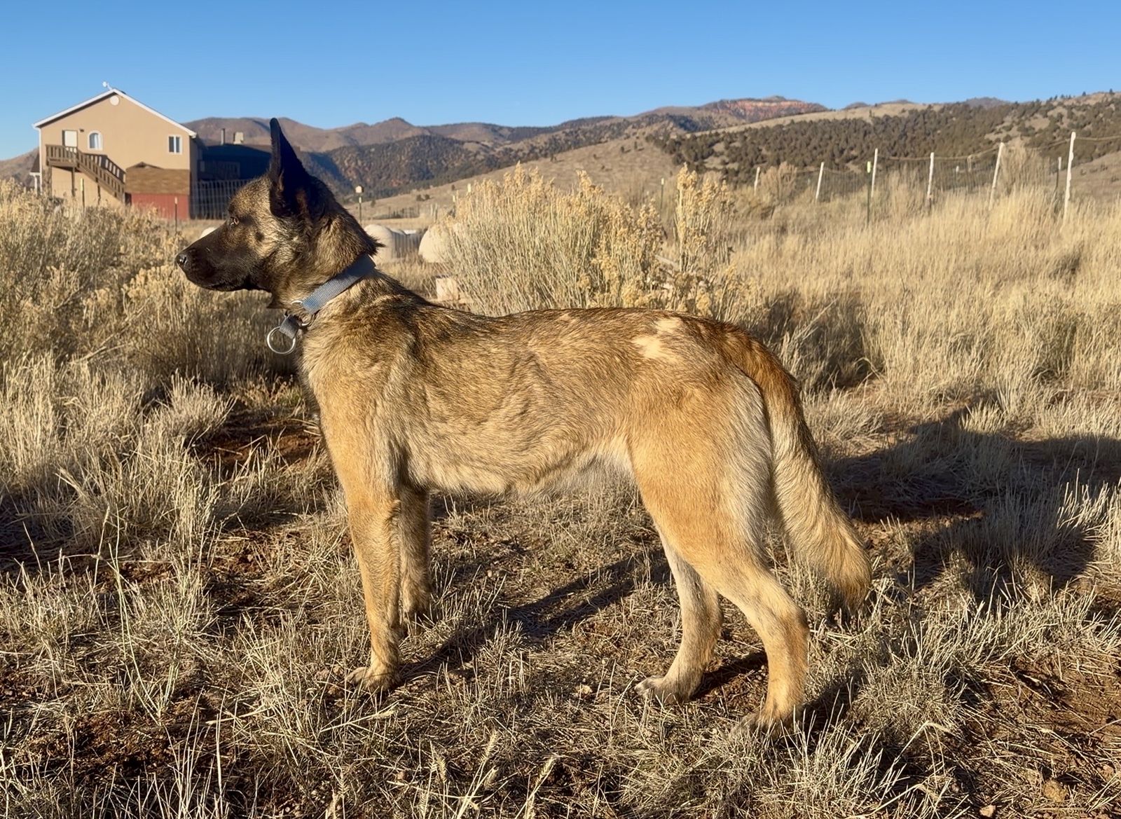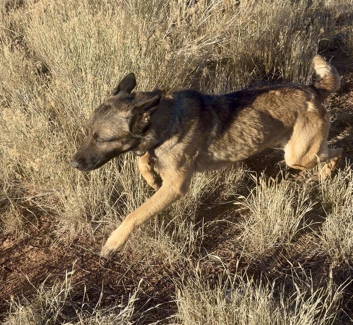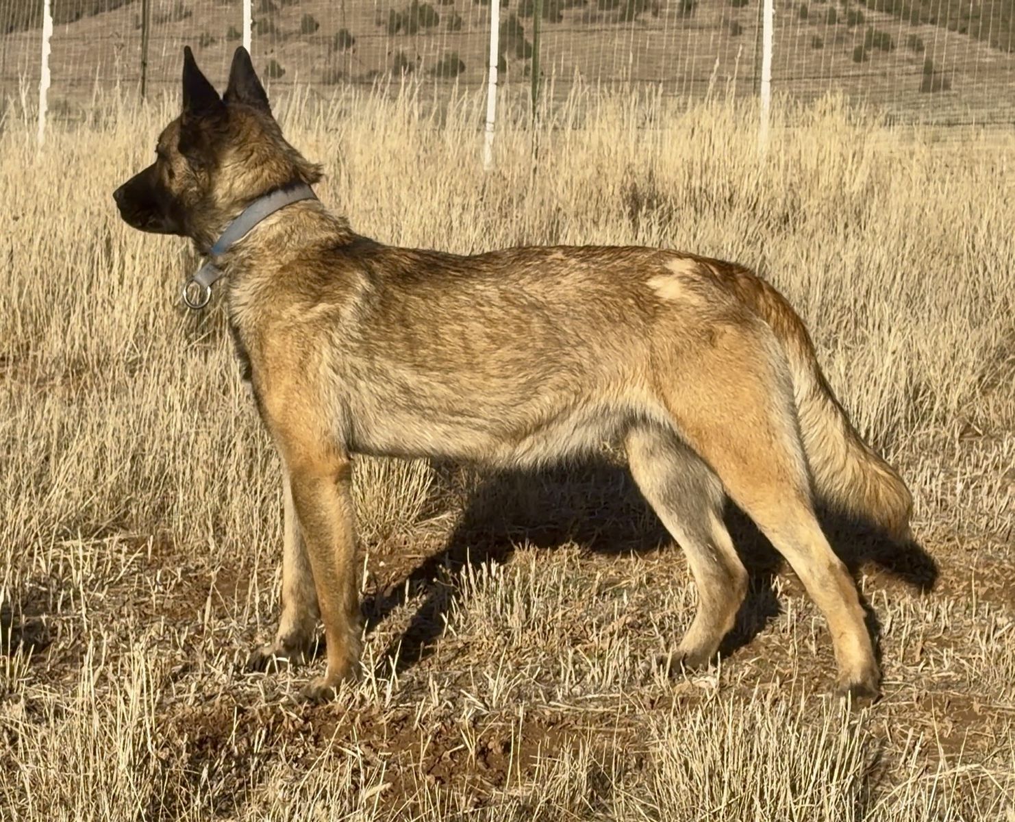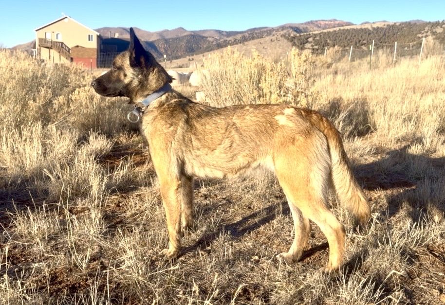ZelleSweet as can be, untrained, Not spayed. I took her in to help a friend who was going through a divorce. I did Embark DNA test on her, she's perfectly healthy and a great mix of breeds. She's half Belgian Malinois. She's about 40-50 lbs.