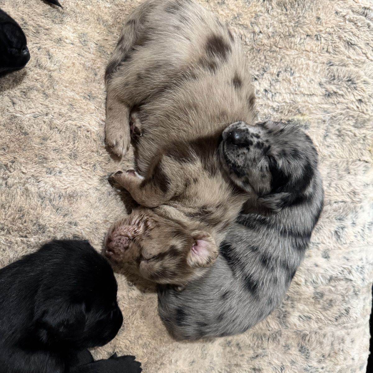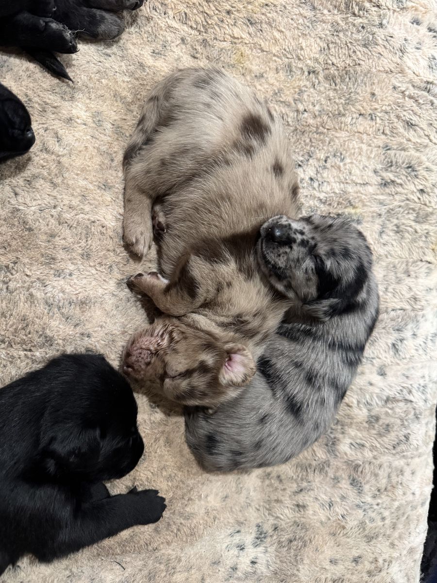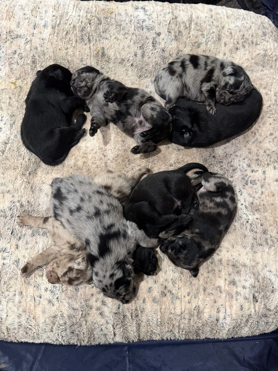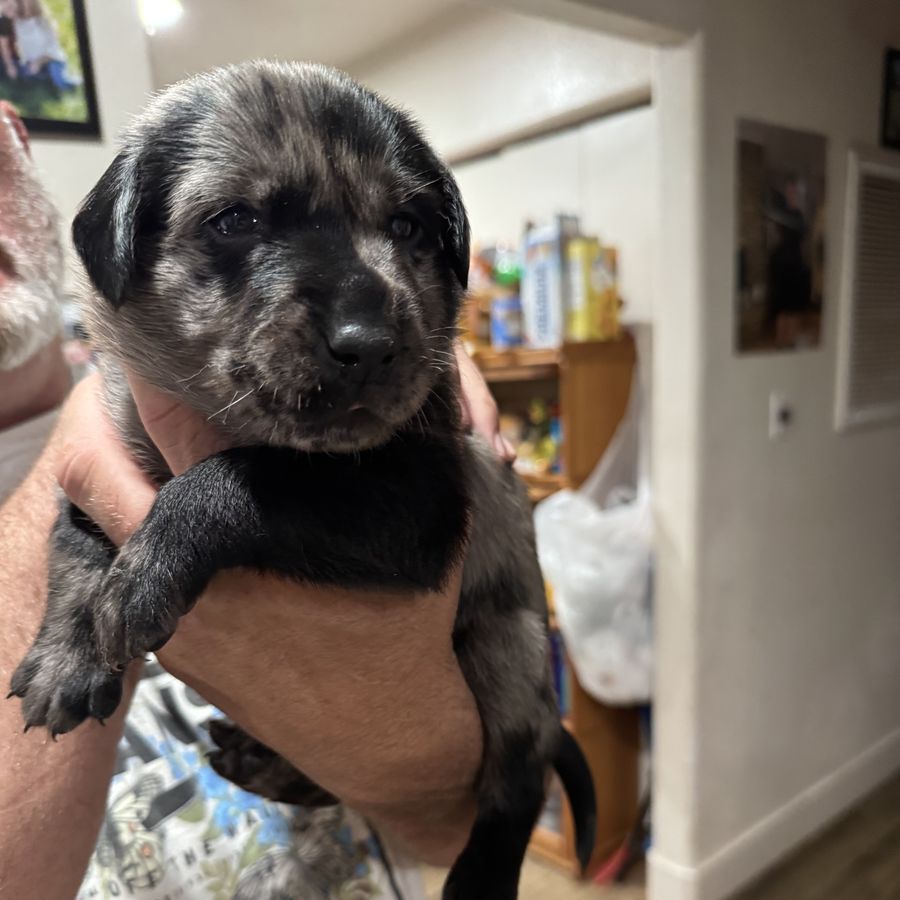 These are catahoula leopard dogs. Their mother is a yellow lab dad’s a Catahoula leopard dog. We have 4 black males and 1 black female. We have one brown spotted female, 3 blue spotted females and only one blue spotted male