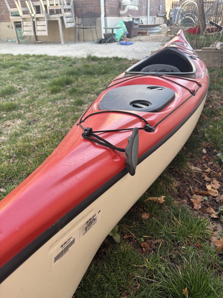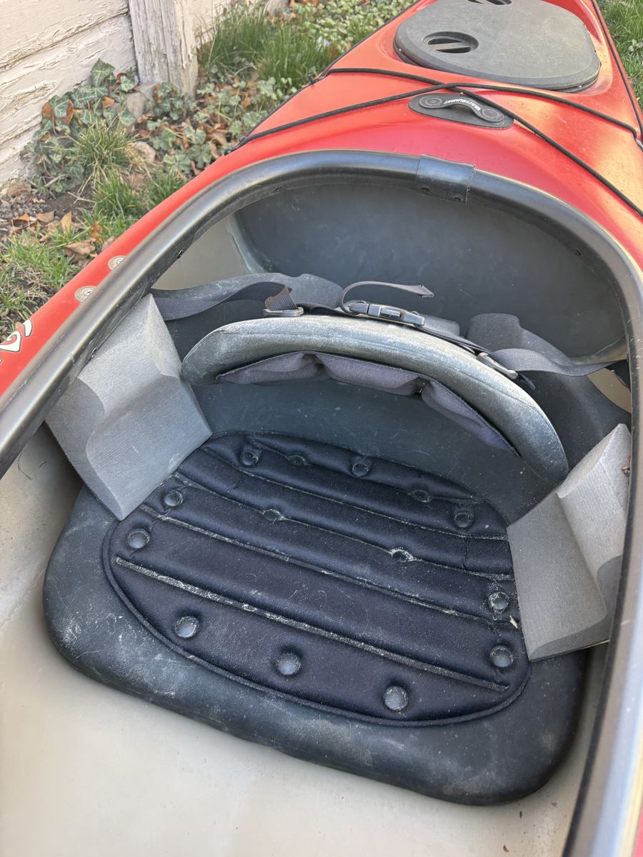 VenmoGreat shape old town kayak. Photographed outdoors, but stored under a tarp most of its life. Rigging is in good shape, not UV compromised. Includes kayak paddle and a cart to help you roll it to the water. Some minor marks from normal use, but otherwise excellent condition. This older model Castine is made of a lighter and faster plastic than the current models. Hatches seal nicely. Extra paddle holder added as well.