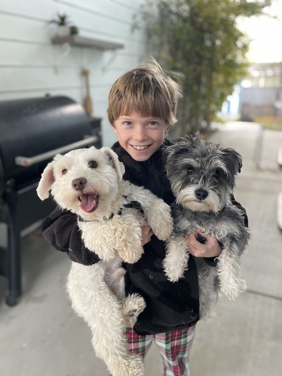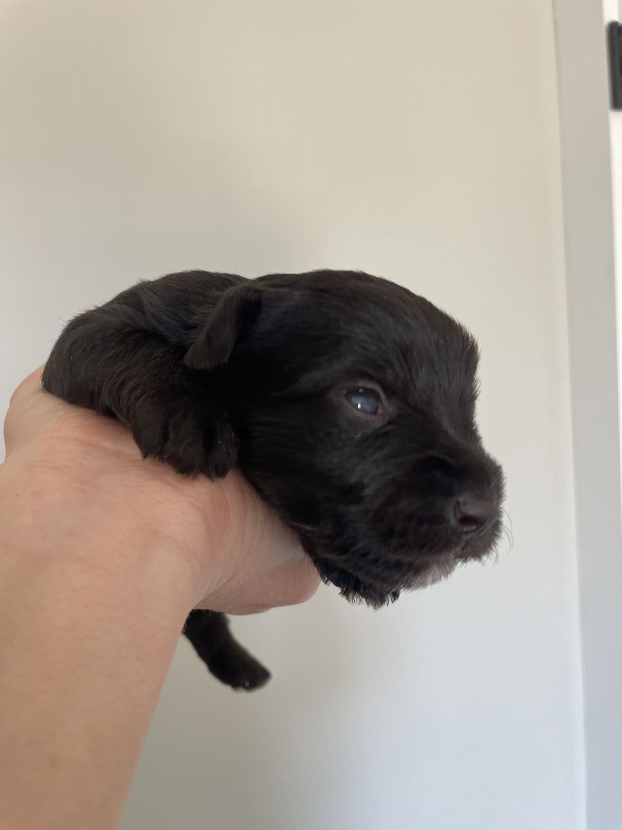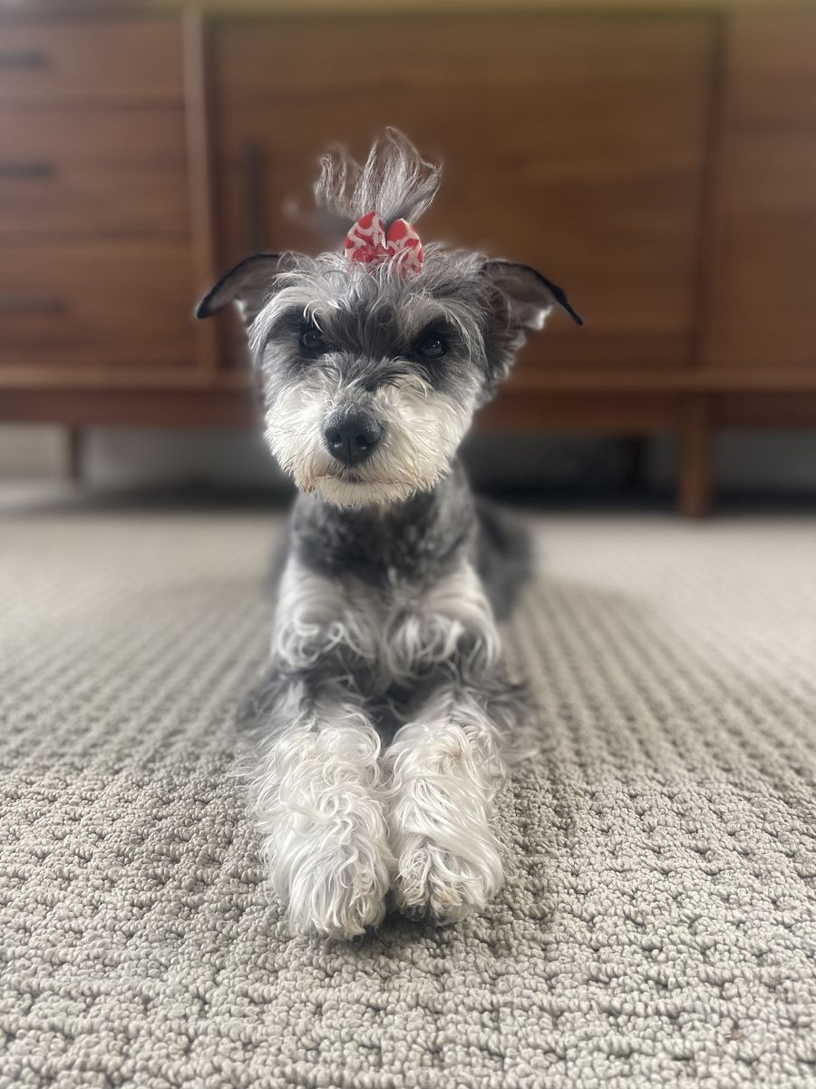 They have a super coat which is a more plush, soft and thick coat than typical Schnauzers. Schnauzers don't shed.