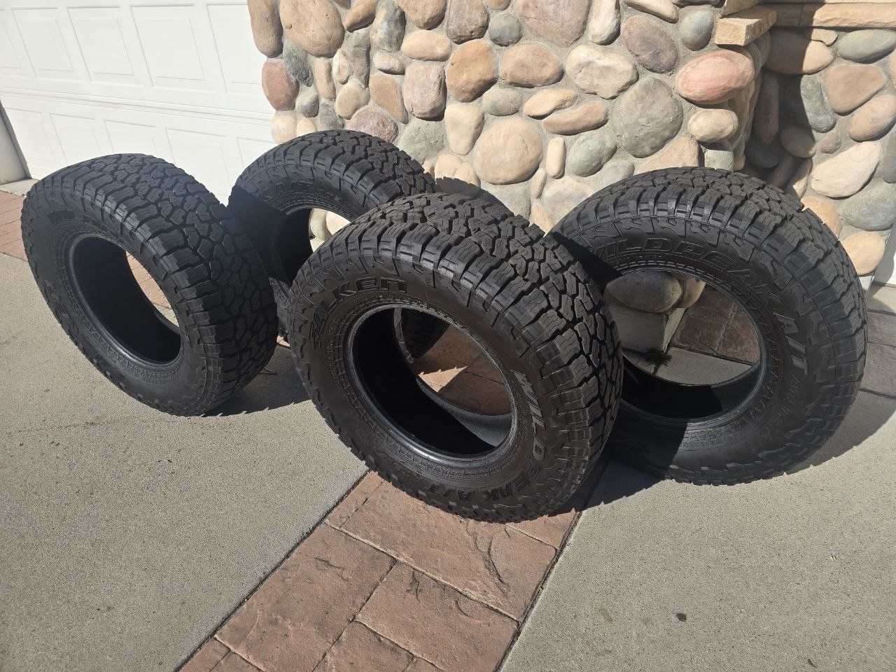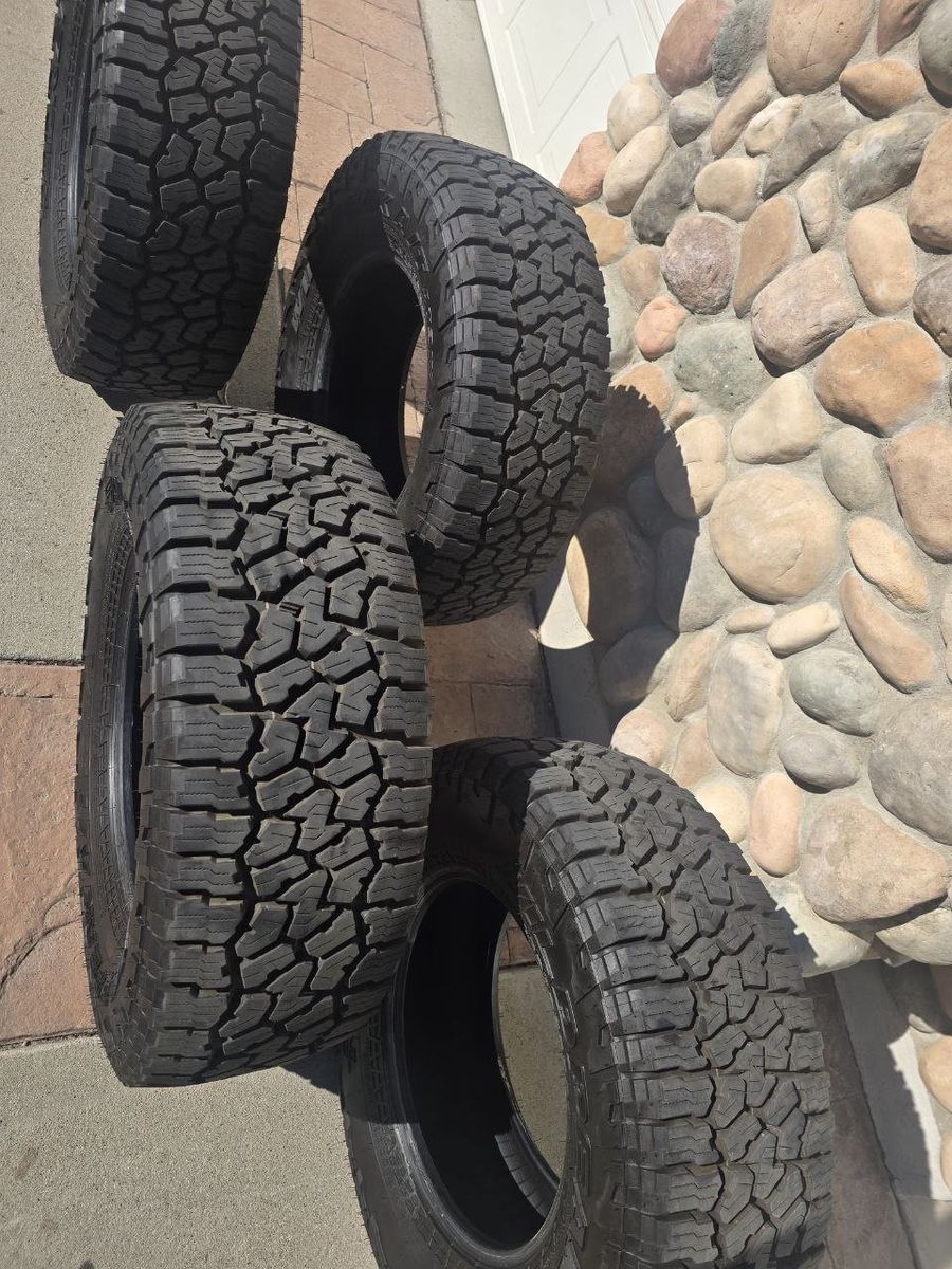 VenmoSelling a set of four (4) Falken Wildpeak A/T3W all-terrain tires. These were the factory tires on my 2025 Jeep Gladiator Rubicon and were professionally removed just 3 days after I bought the vehicle to upgrade to 35s. They have less than 200 miles on them. They are essentially brand new—you can still see the factory markings on the tread.