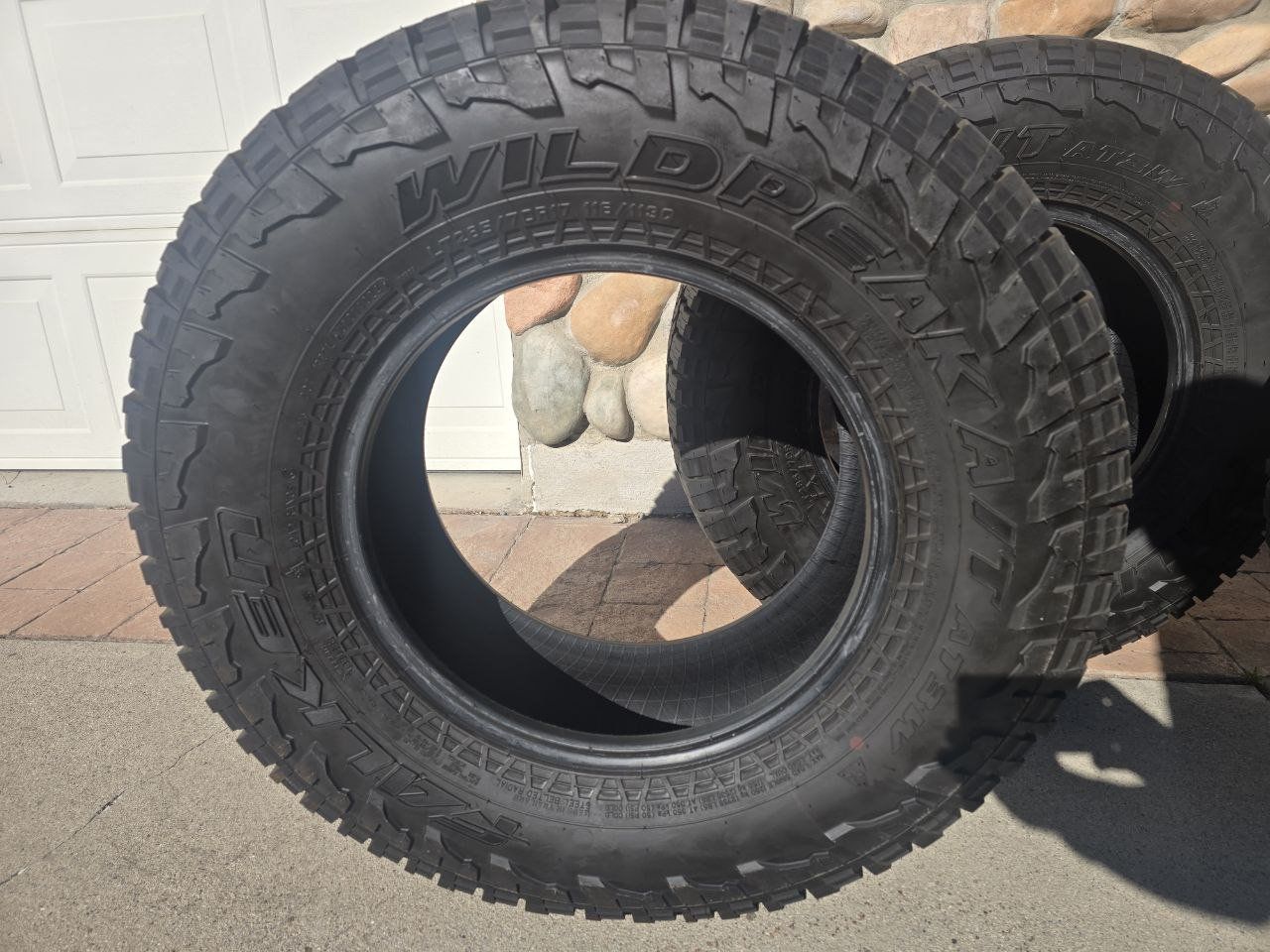 Details: Brand/Model: Falken Wildpeak A/T3W Size: LT285/70R17 (Standard 33” Rubicon size) Load Range: C / 116/113Q Condition: Like New / Take-offs Quantity: 4 Tires These are fantastic all-terrain tires, known for being quiet on the highway while having great snow and off-road performance (3-Peak Mountain Snowflake rated). Location: Draper Payment: Cash or Venmo preferred.