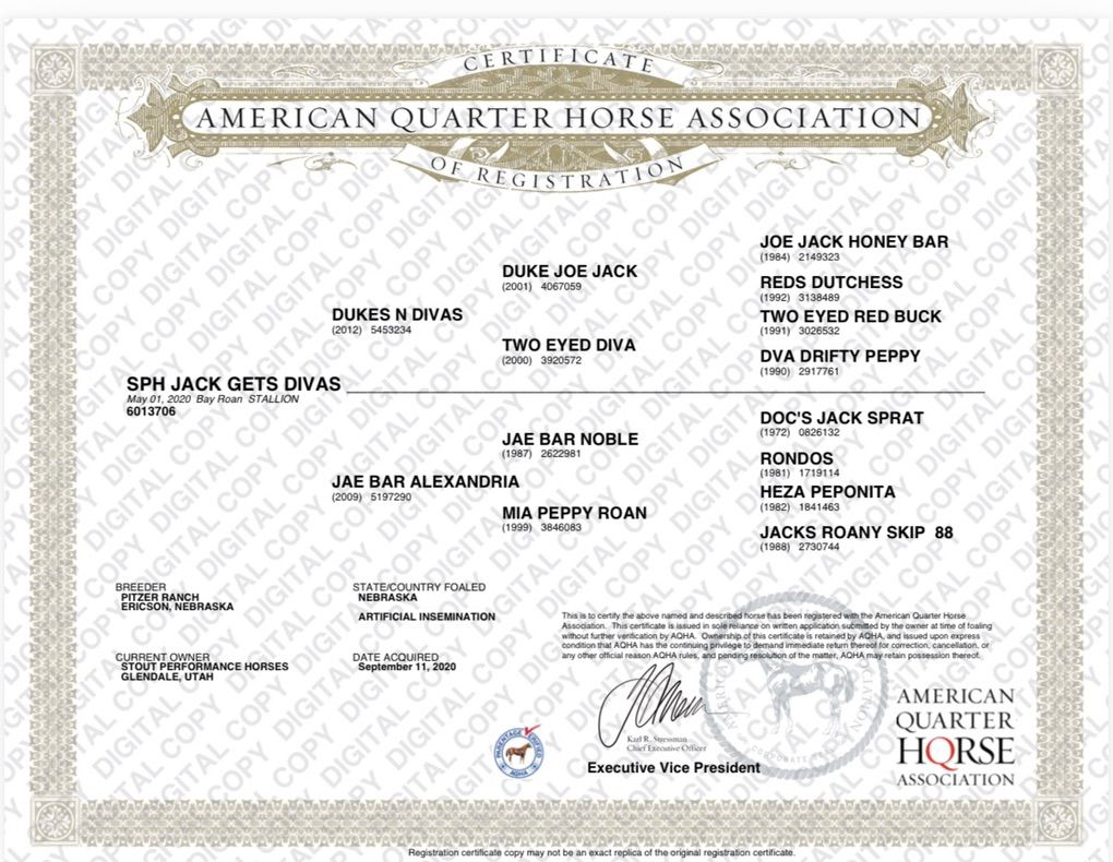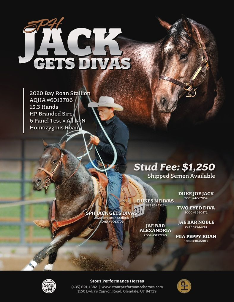 VenmoStout Performance Horses is standing SPH Jack Gets Divas and Quest Two Best for the 2026 breeding season. Both stallions have earned their AQHA Performance Register of Merit (ROM) with AQHA points in heading, heeling and breakaway. Both are true switch-end rope horses. Both are AQHA world show qualifiers. They both have competed on the biggest stages of roping. Both stallions are HP (Pitzer Ranch) branded and are Howard Pitzer Invitational (HPI) stallions. Their foals can be sold at the Pitzer Ranch sale and can compete in the HPI futurity.