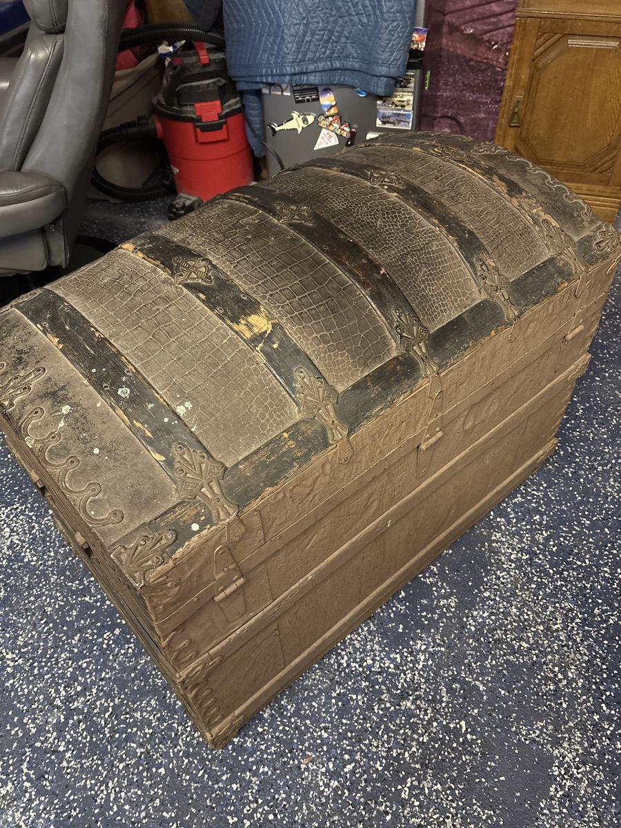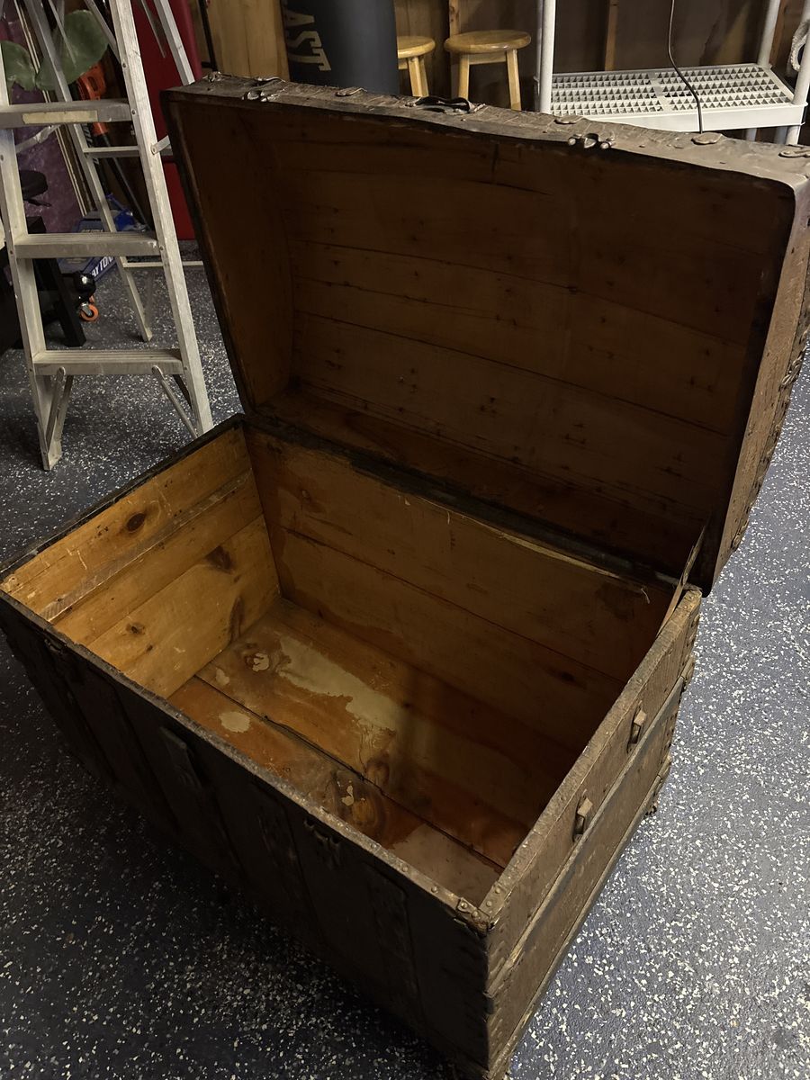 PayPalAmazing late 1800’s Antique Large 36” Saratoga Camelback Trunk Great Restoration Project. I bought to Restore but Fighting Stage 4 Cancer and Don’t Have the Energy to Complete. Call or Text.