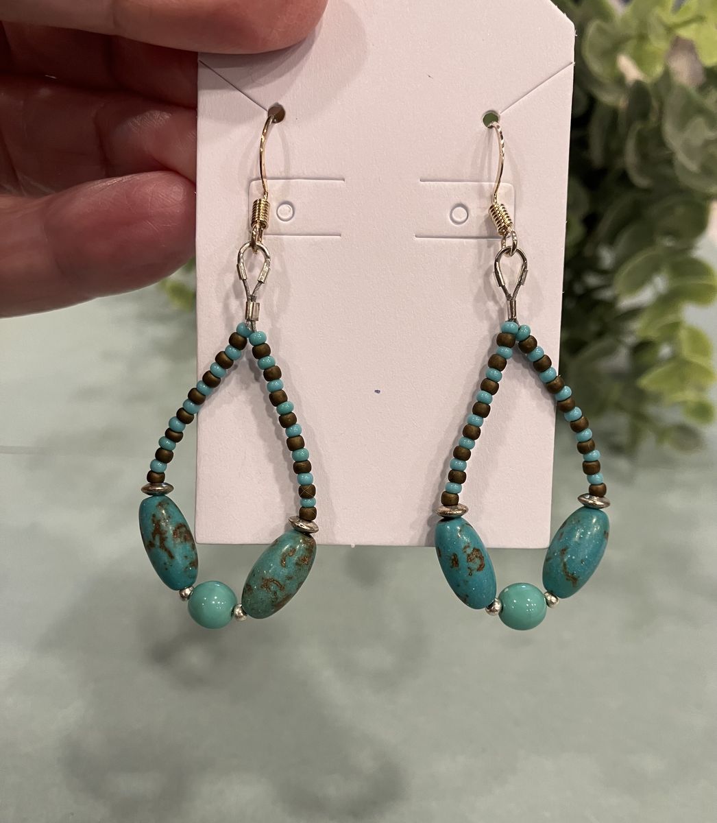 VenmoTurquoise colored, tear drop dangle earrings in beautiful shades of green and blue. Earrings are approximately 1.75 inches long. Ear wires are stainless steel. Gift box included. Local meetup or can mail with ship fee.