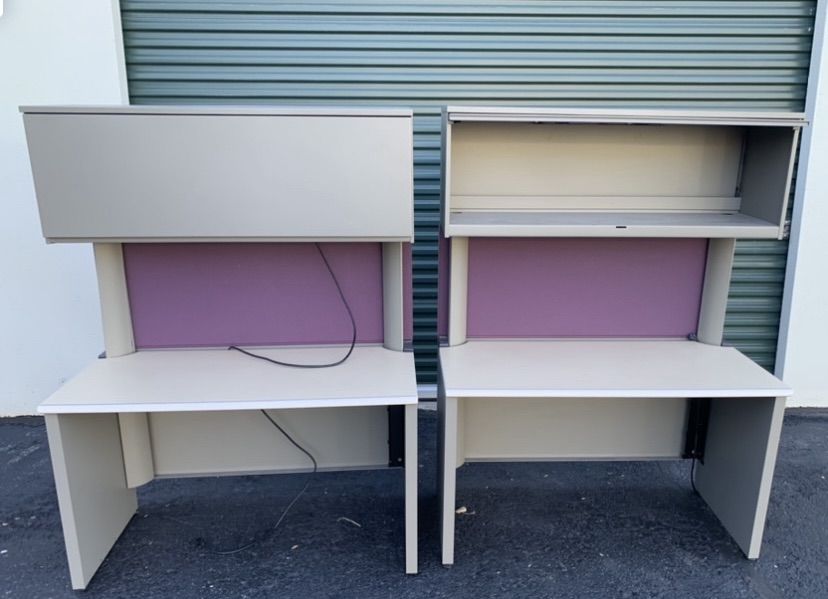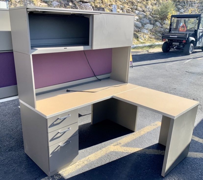4 each 66” X 24” L-SHAPE WITH OVERHEAD AND DRAWER $200.00 each Delivered