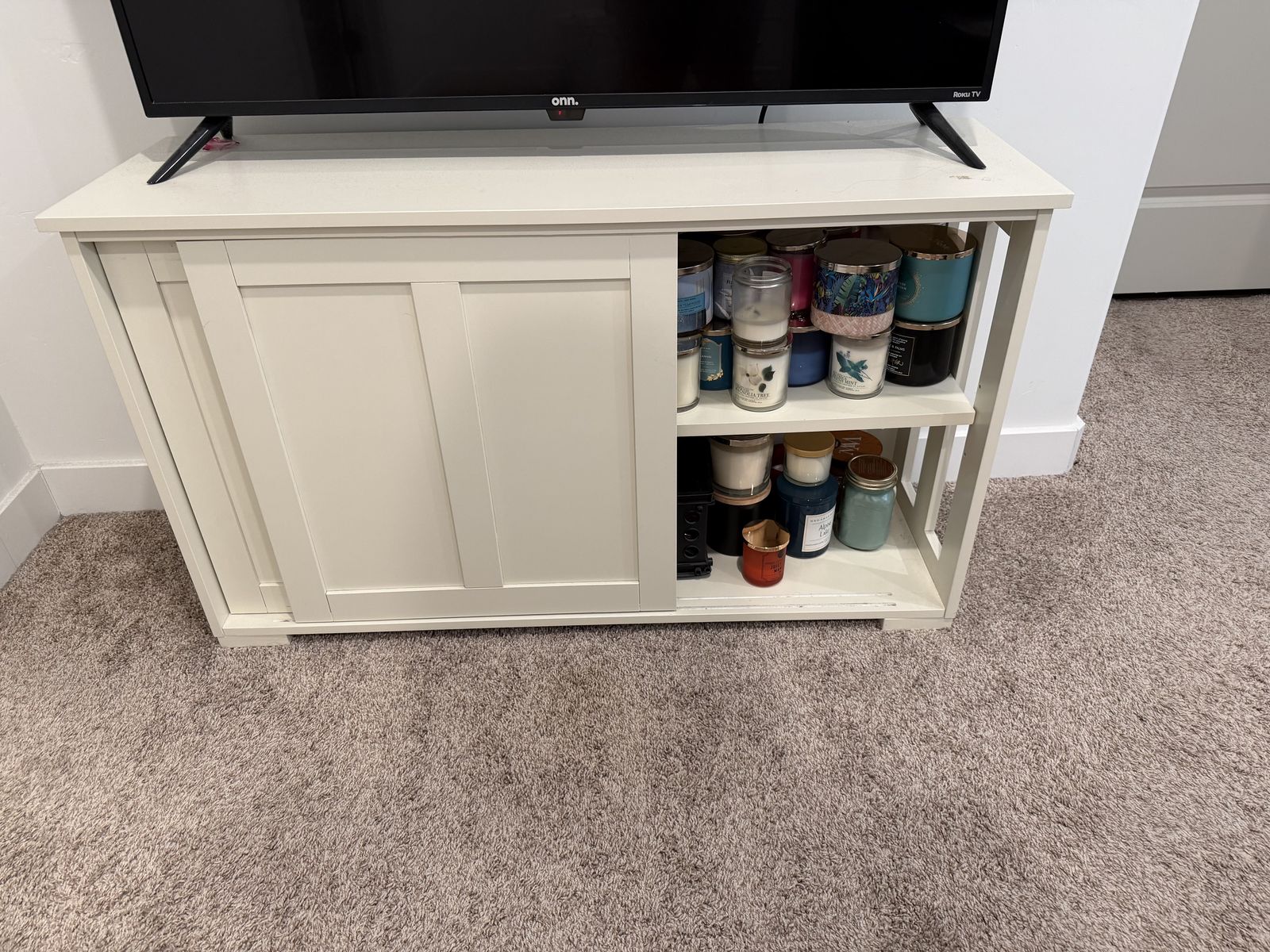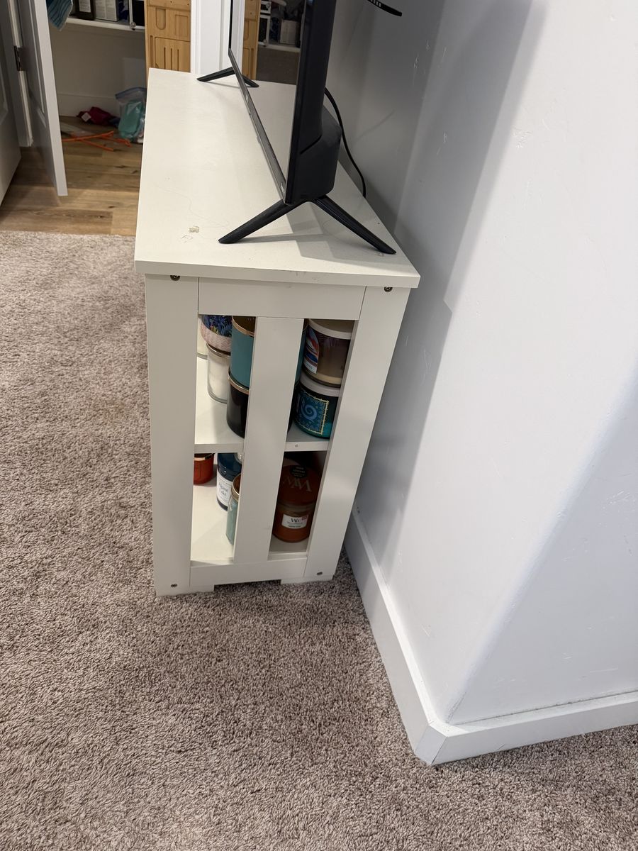 VenmoCute white cabinet. Has rolling doors on the front. In great shape! Measures 42 wide, 13 deep, 24 1/2 tall. Pick up only.