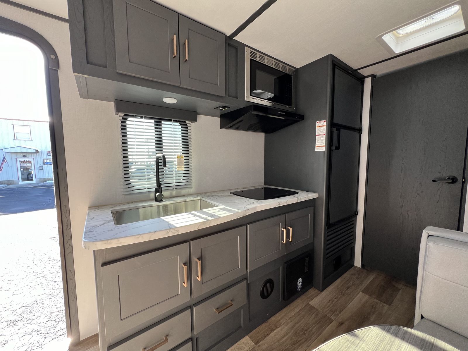 This bunkhouse sleeps up to 6. KEEPS IT SUPER SIMPLE WITH NO SLIDEOUT. It does come with solar! 1 YEAR WARRANTY.