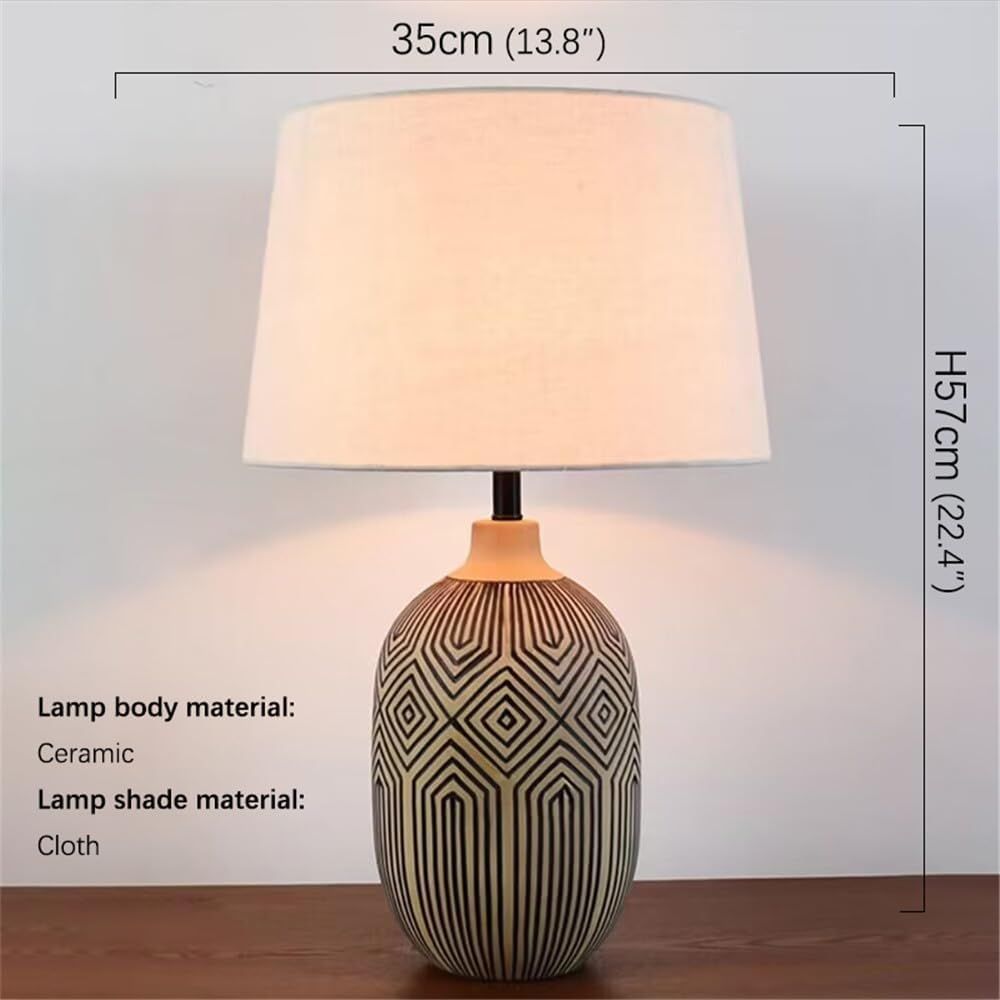 This modern table lamp series combines artistic aesthetics and practical function, offering a variety of styles to choose from, such as coastal style and light luxury and simplicity. Selected materials such as hand-painted ceramic bases and high-quality linen shades meet a variety of needs from reading to ambient lighting. Thoughtful humanized design includes a switch within easy reach and scientific light distribution, and the 20-inch golden size is suitable for all kinds of home spaces. Each piece is carefully crafted to present a unique handmade texture, adding elegance to your bedroom, living room or study. Whether you want to create a cozy atmosphere or enhance the style of your space, this table lamp is the perfect choice to brighten up your home. Switch Type: In-Line Product Type: Bedside Base Color: Black Base Material: Ceramic Number of Lights: 1 Dimmable: Yes Integrated LED: No Bulb Not Included But Required: Yes Maximum Wattage (Per Bulb): 60 Bulb Base: E26/Medium (Standard) Power Source: Plug-in Plug-In: Yes Switch Included: Yes Light Direction: Ambient Shade Included: Yes Set Type: Single Voltage: 120 Shade Shape: Drum Cord Color: Black Dry, Damp or Wet Location Rated: Dry Lamp Shape: Cylinder Pieces Included: Shade Recommended Bulb Shape: Standard Shade Material: Linen Shade Color: Tan & Black