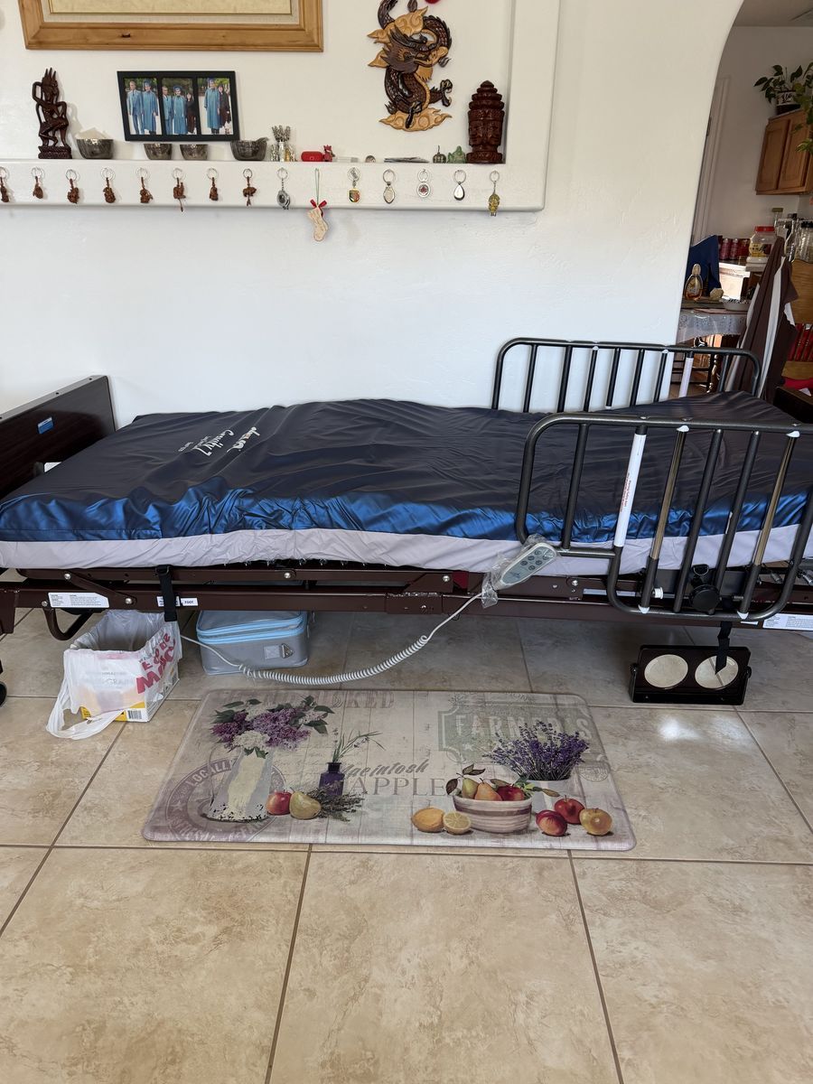 Looking to sell this hospital bed full electric. We bought this for my father this year and was only able to use it for about a month before he passed away. Includes the mattress in the second picture. We bought the bed for about $1,900, looking to sell it for $1,500. (he passed away at the hospital not on the bed).