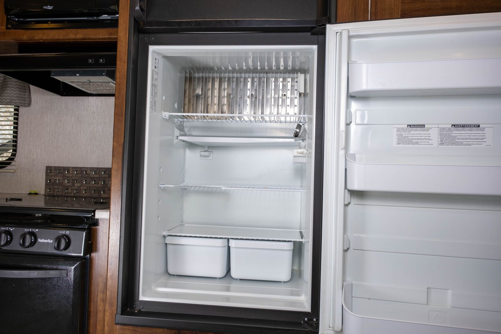 Kitchen: 3-burner stove with oven, microwave, and double-door refrigerator.