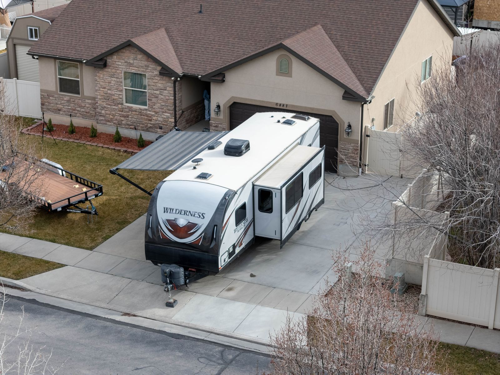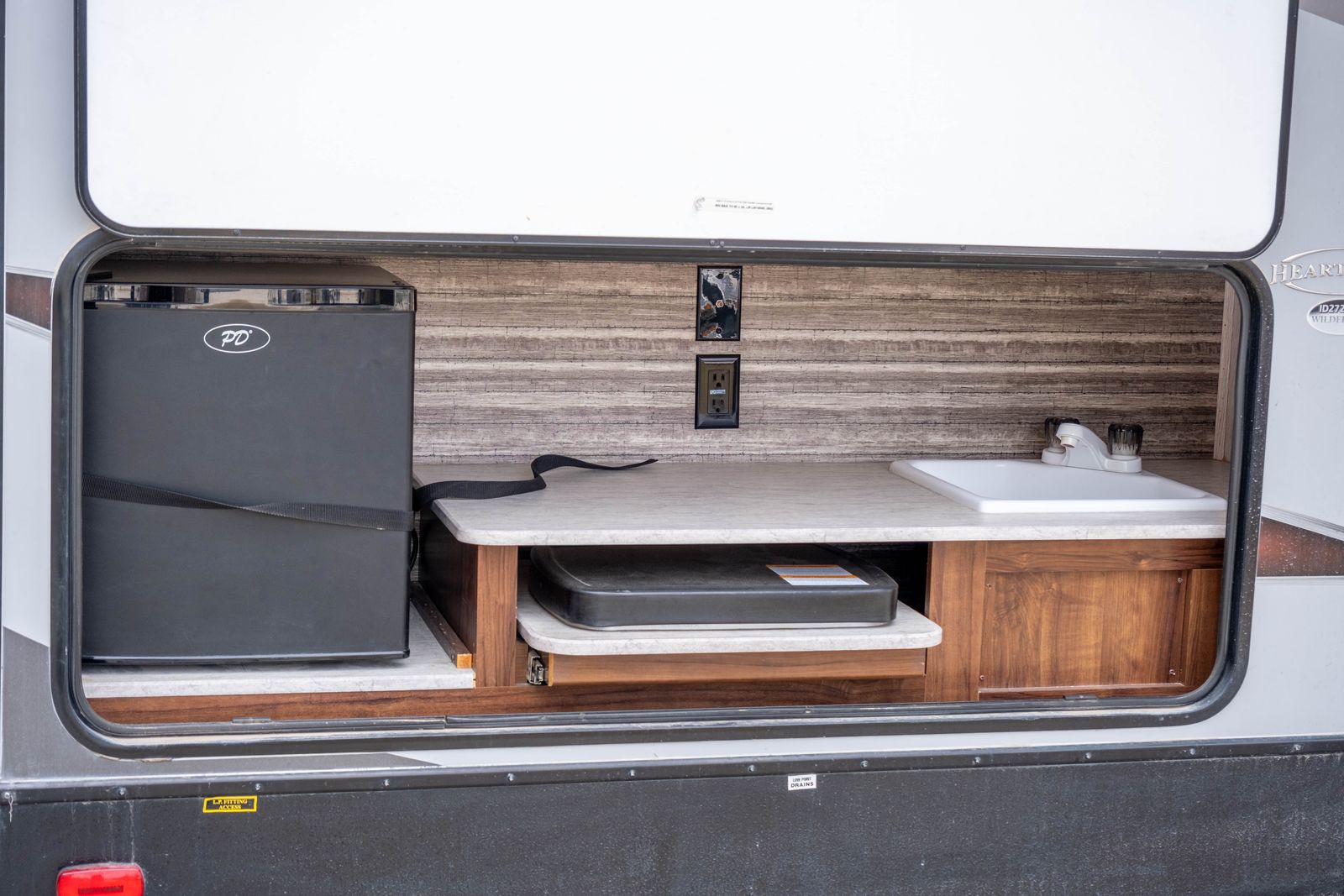 The 2019 Heartland Wilderness 2725BH is a lightweight travel trailer (approx. 6,300 lbs dry) designed for families, featuring a bunkhouse floorplan that sleeps up to 9–10 people. Key specs include a 32-foot length, one slide-out, a U-shaped dinette, an outdoor kitchen, and an enclosed/heated underbelly for four-season protection. This trailer is in great condition and everything works. It has an upgraded mattress and two TVs installed with DVD. It also has new tires and a backup camera.
