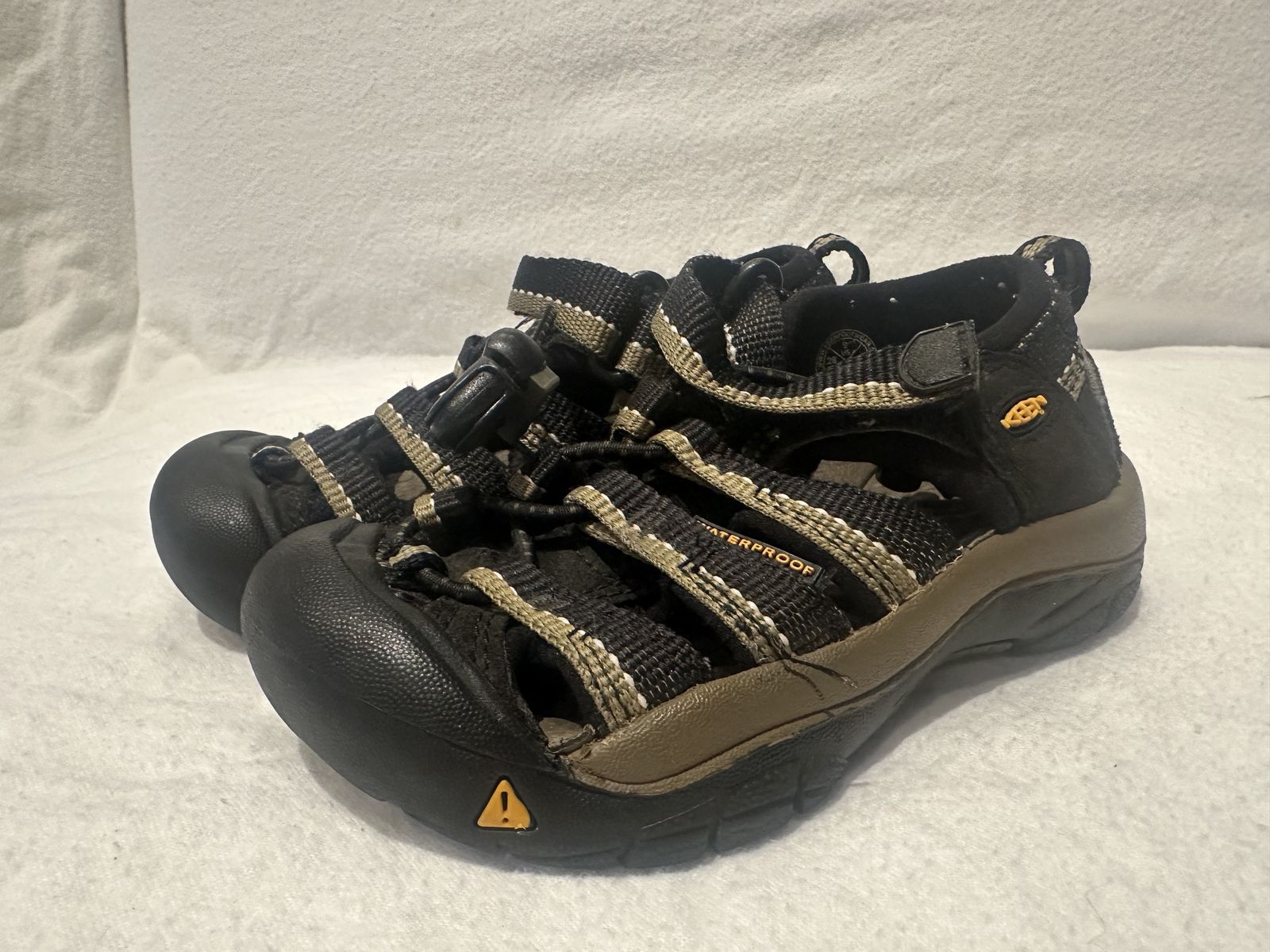 Keen toddler size 9 black/khaki stripe waterproof, hiking sandals. These are in excellent condition, see photos for details. I take cash or Venmo, but cash is preferred. Text is best. 801-201-4446. Check out my other ads for additional sizes and styles.