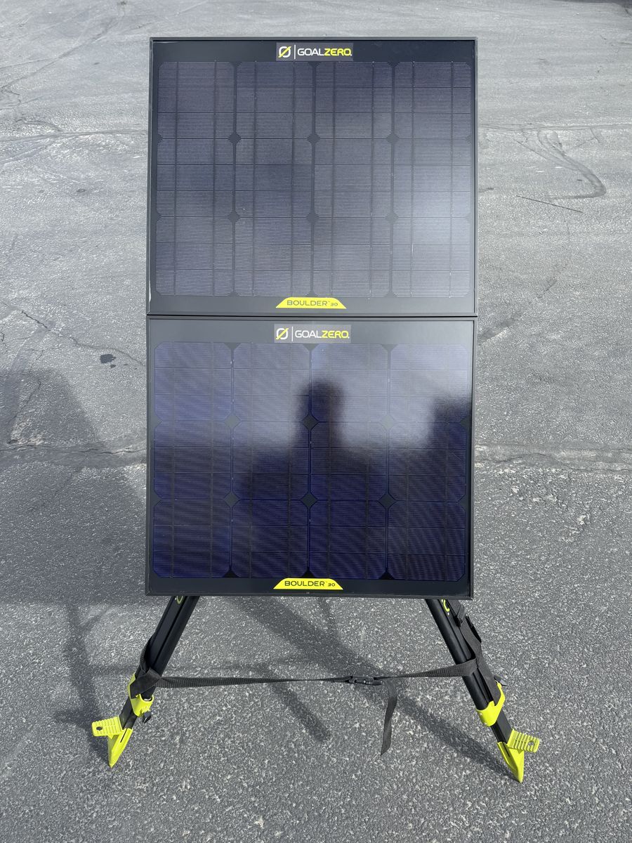 Like New Boulder Solar Tripod, 2 Boulder 30 Watt Solar Panels, and Boulder 30 Travel Case.
