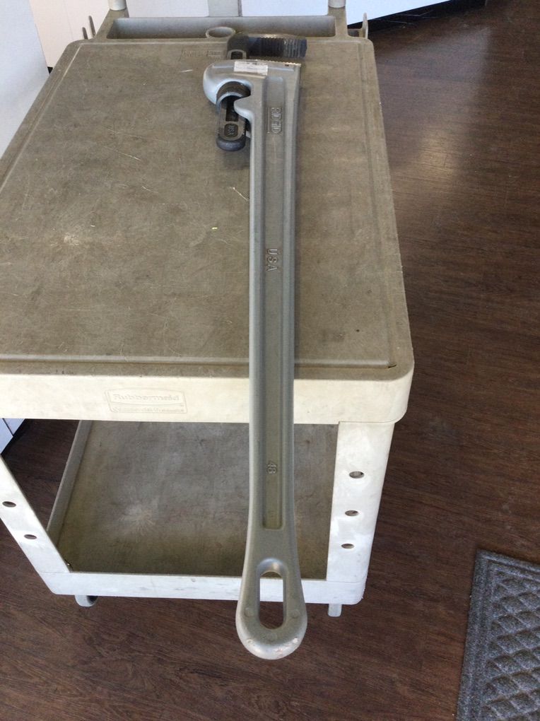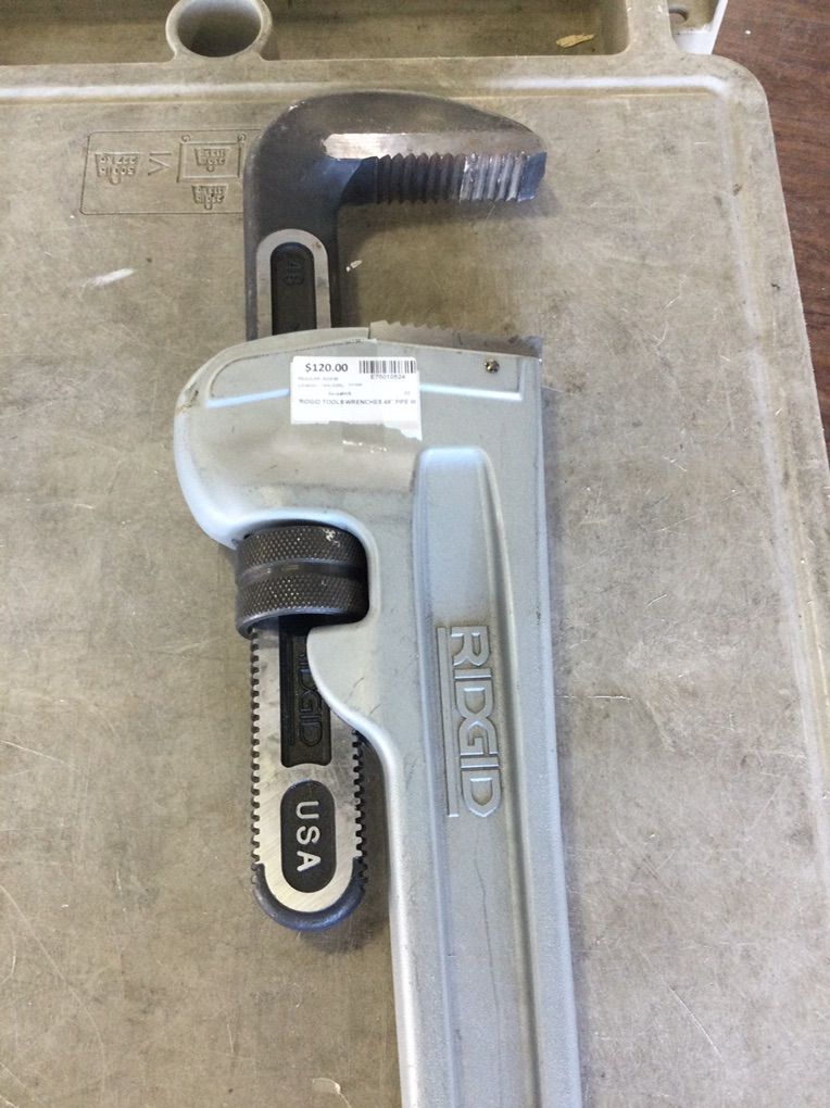 Ridgid 48” aluminum pipe wrench for sale.Self cleaning threads and hook jaws.Asking 200.00. 1946 west 5600 south Roy, Utah. 801-776-1122. #E75010524