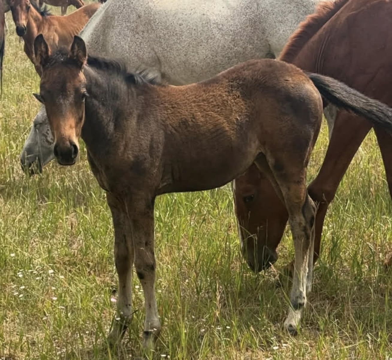 I’m offering a good one! 2025 model bay filly. She is halter broke, loads and unloads, easy to catch, and i’ve trimmed her feet. She’s the sweetest horse on the ground. Start her your way!